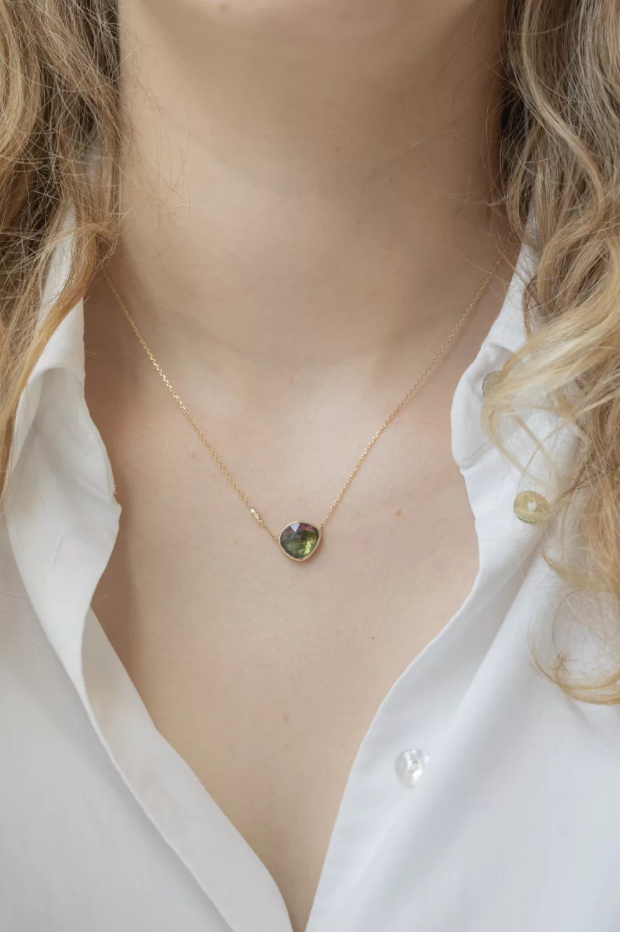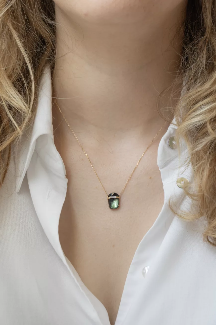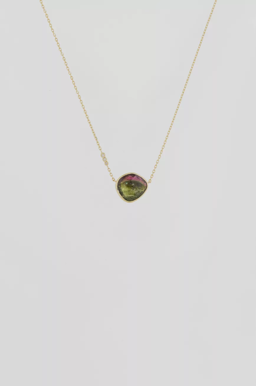 Watermelon tourmaline and grey diamond with dangling detail necklace