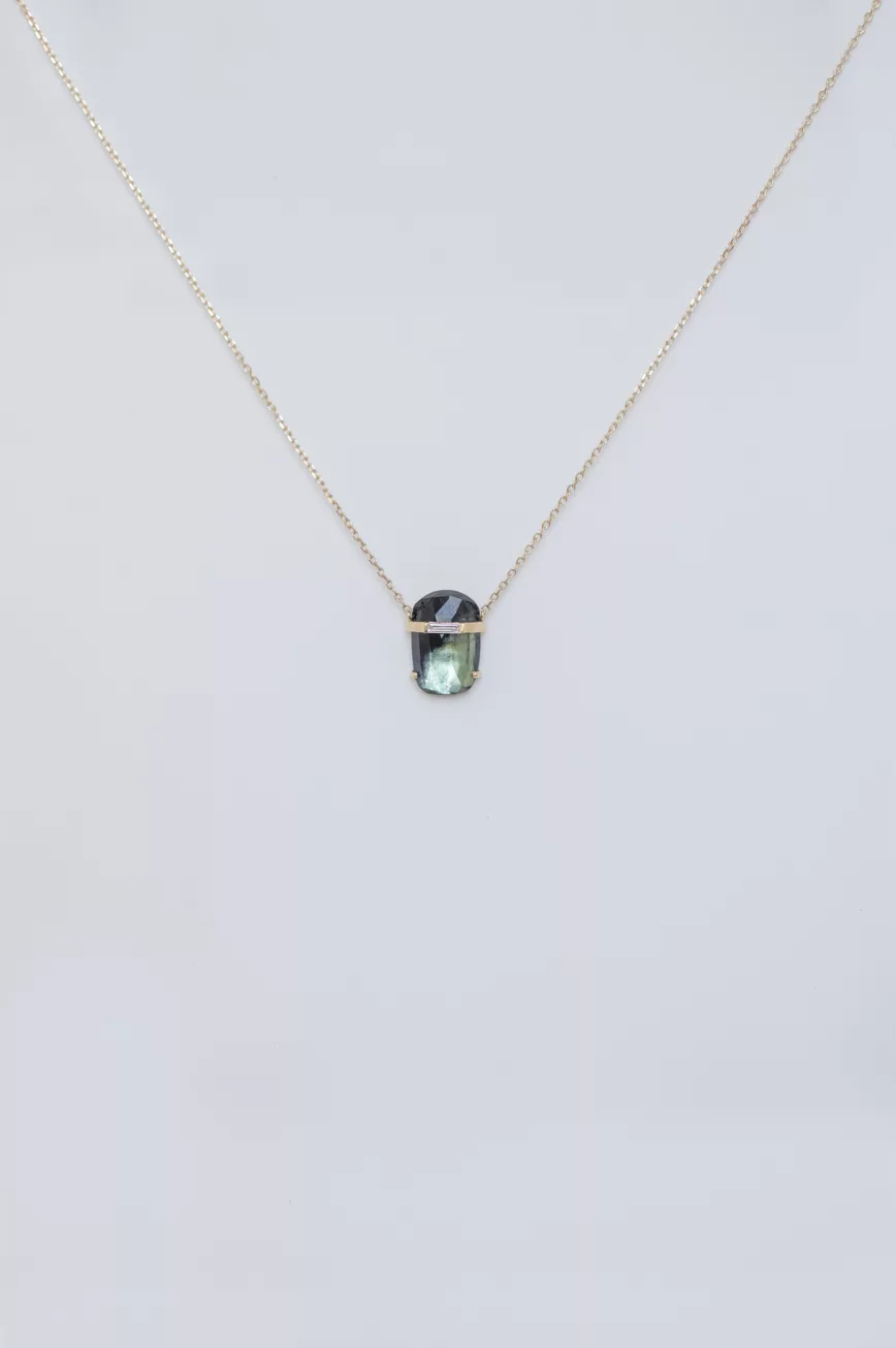 Green baguet cut tourmaline with baguet diamond chain necklace