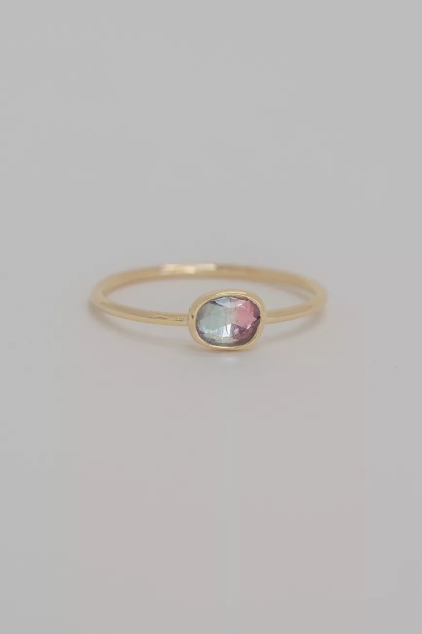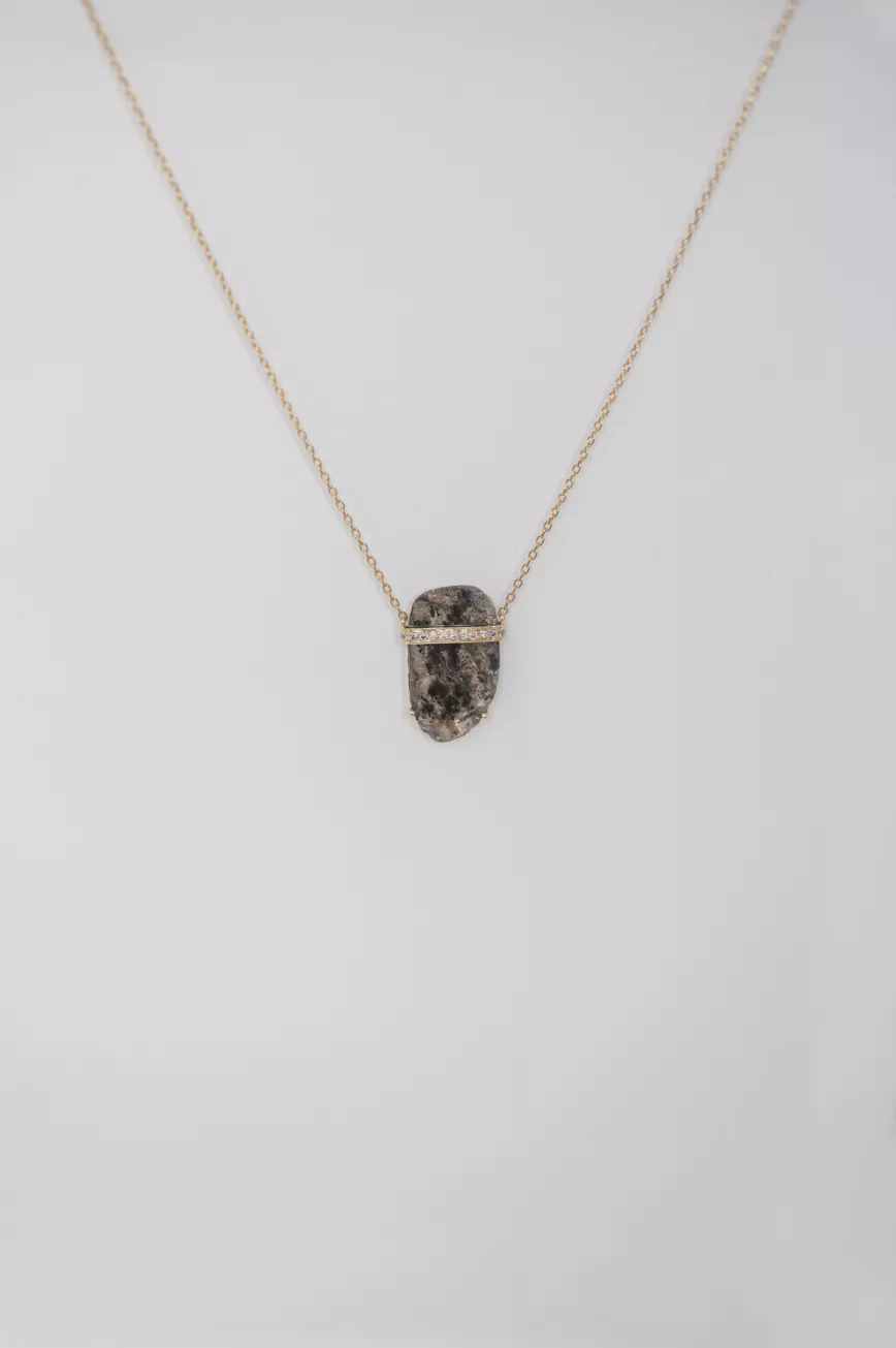 Rosecut watermelon tourmaline pencil & diamonds necklace