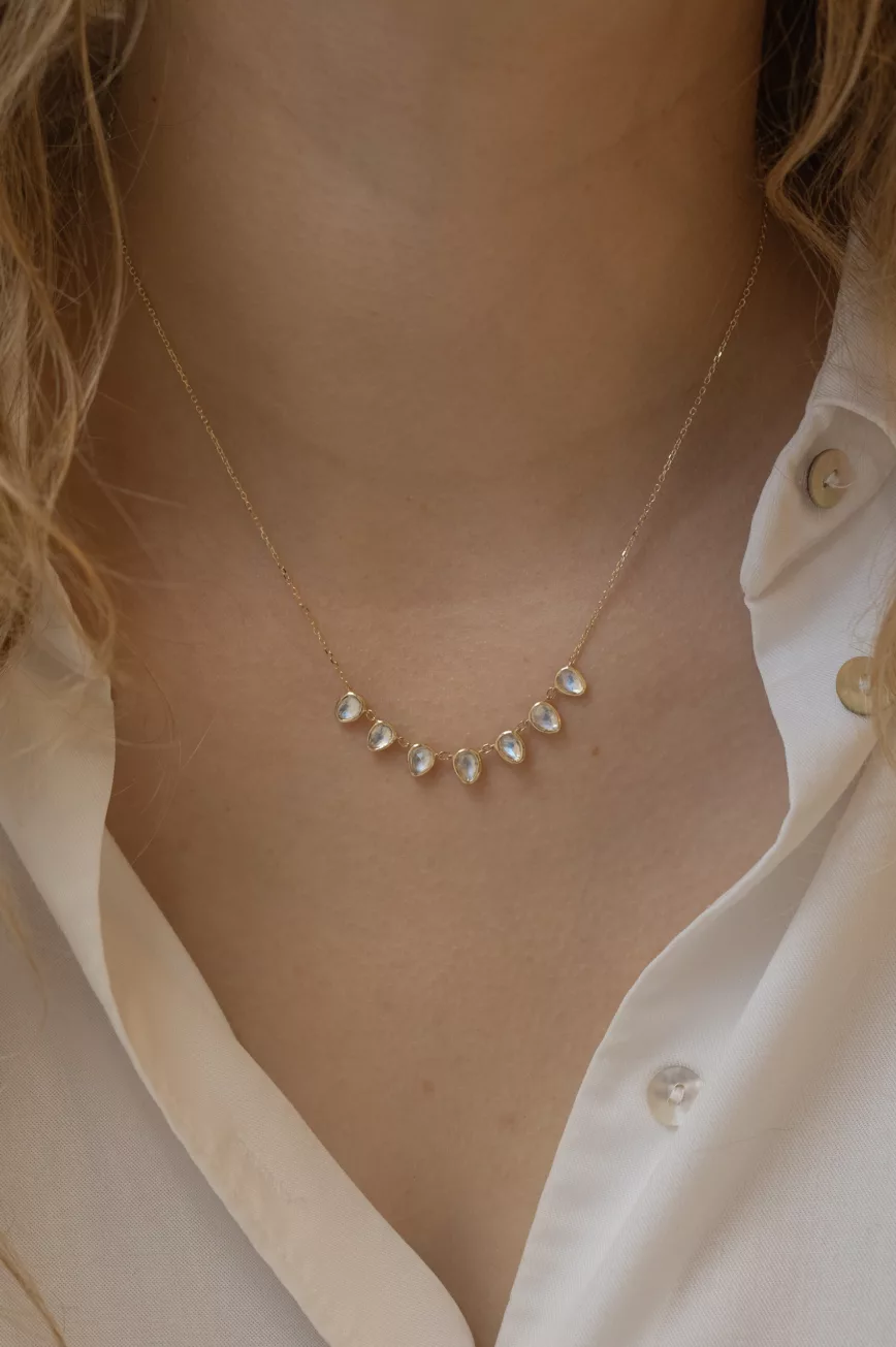 Moonstone cabochon & dangling diamonds jellyfish necklace