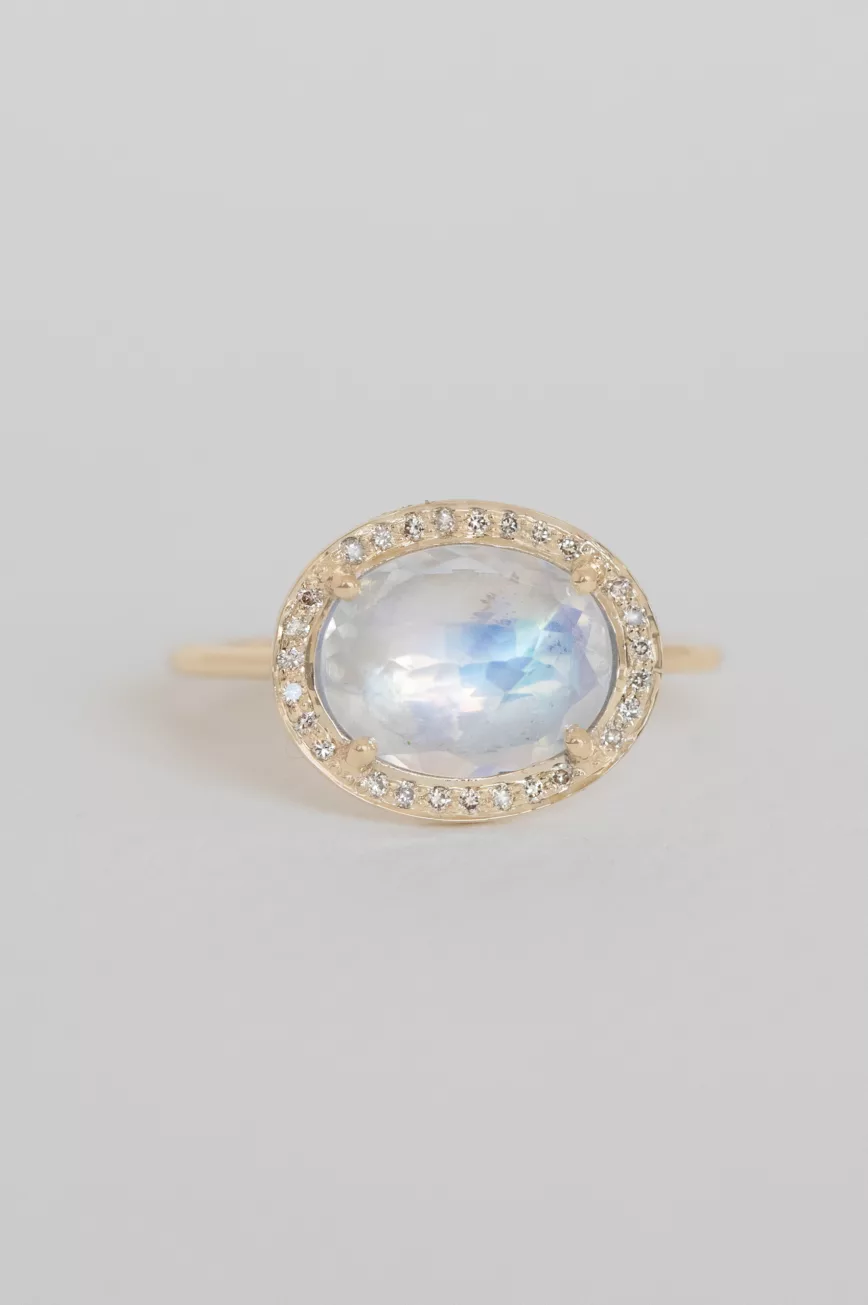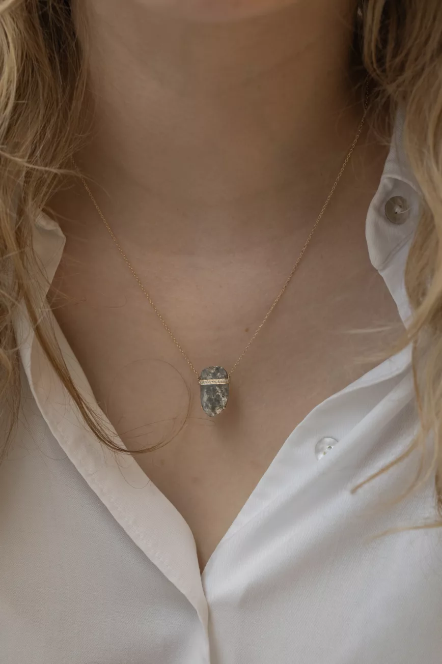 Moonstone cabochon marquise with baguettes diamonds sun medal necklace