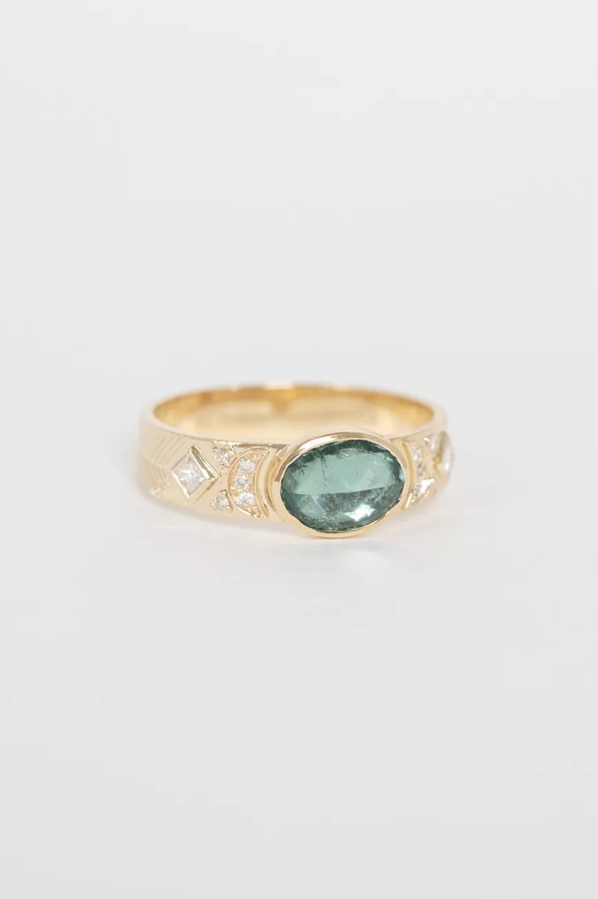 - Blue tourmaline moon crescent and square diamonds ring$3,770.86