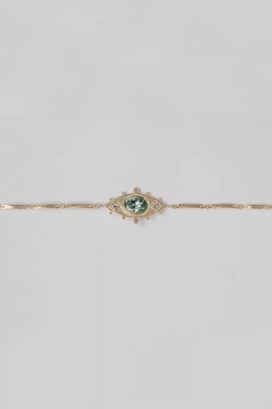 Light turquoise tourmaline baguette and dangling diamond necklace