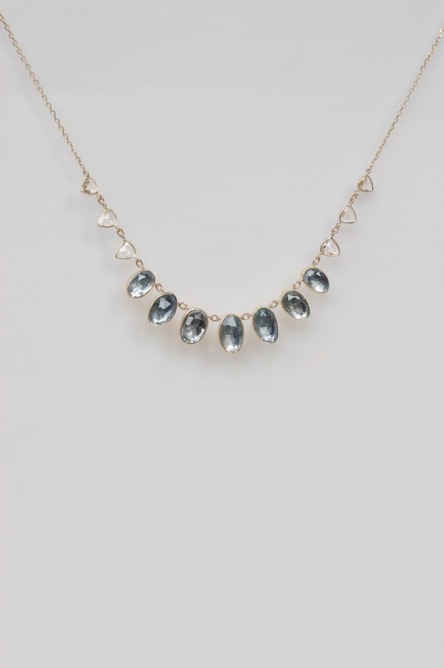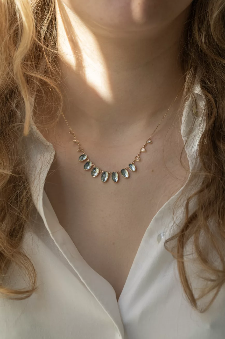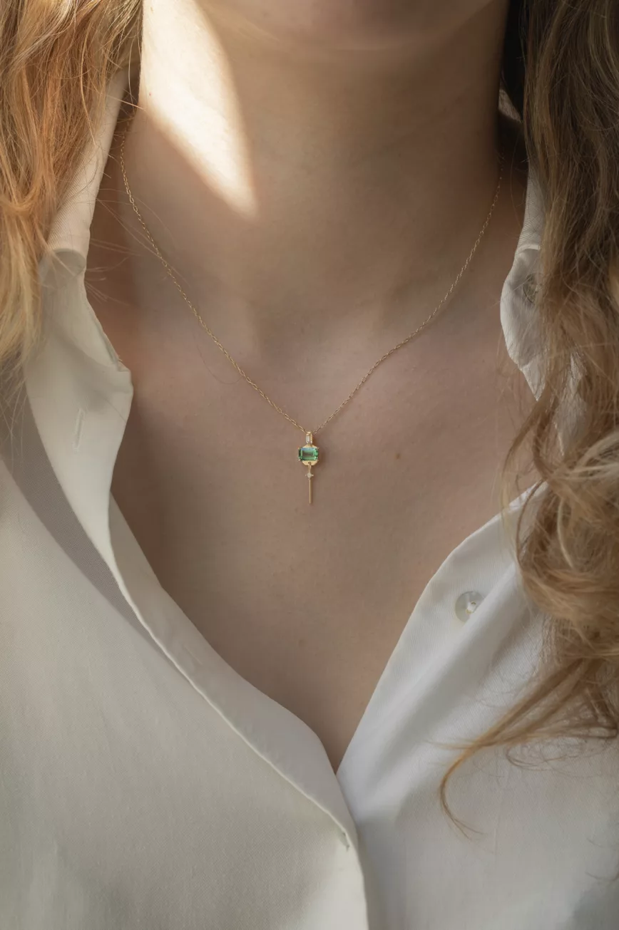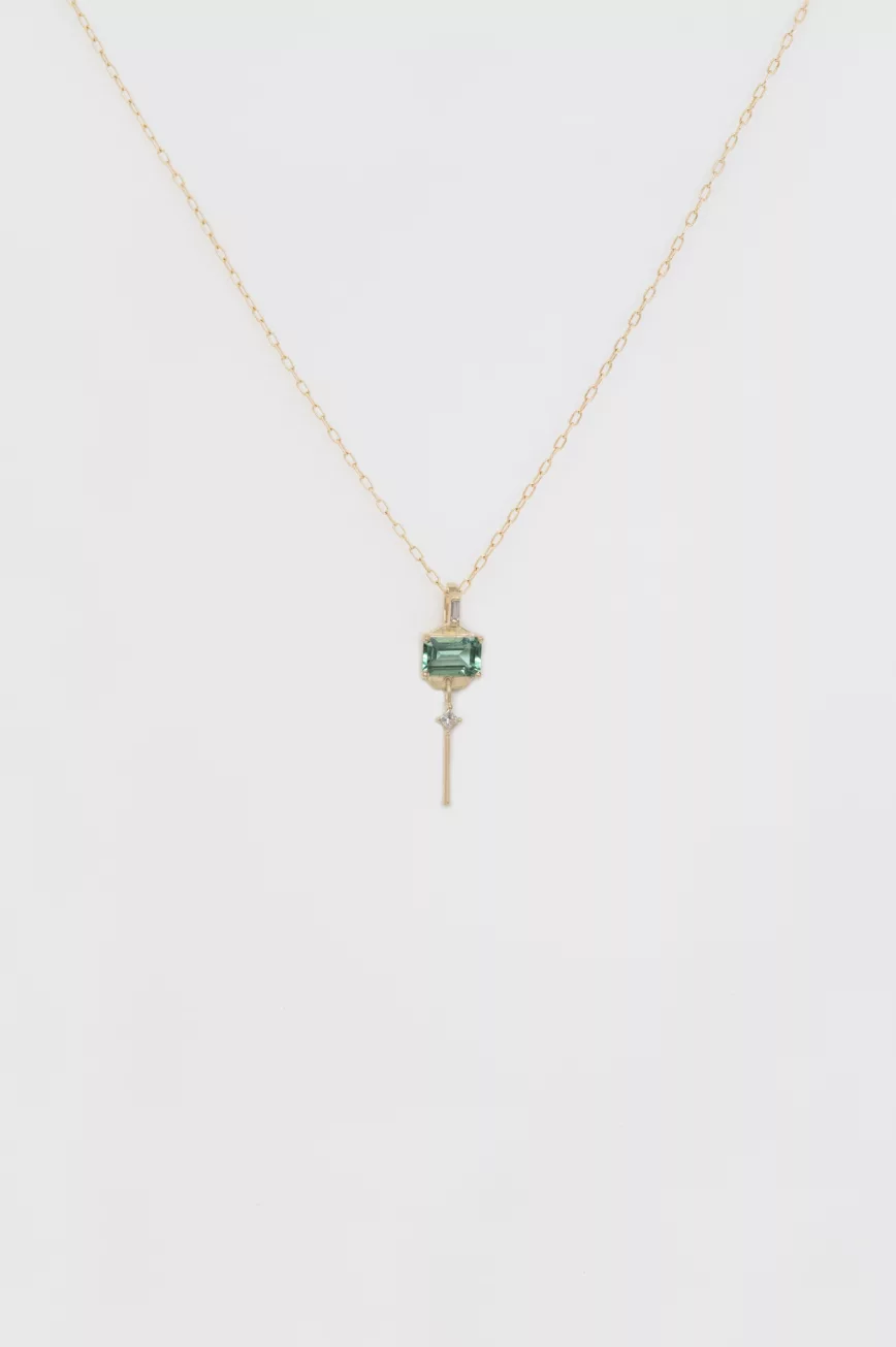 Light turquoise tourmaline baguette and dangling diamond necklace