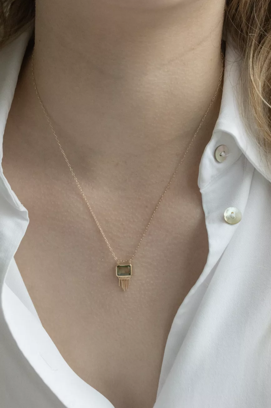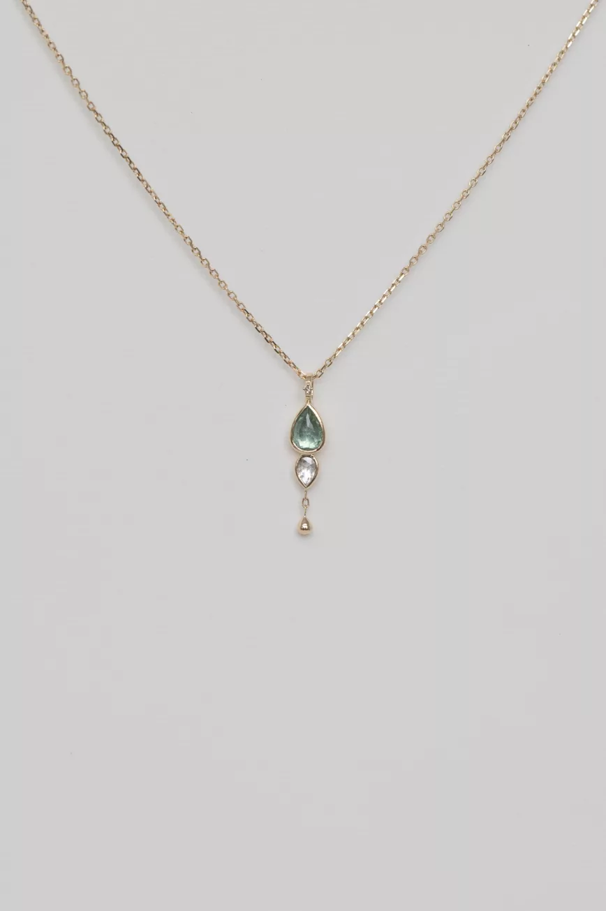 Turquoise tourmaline and grey diamond with dangling detail necklace