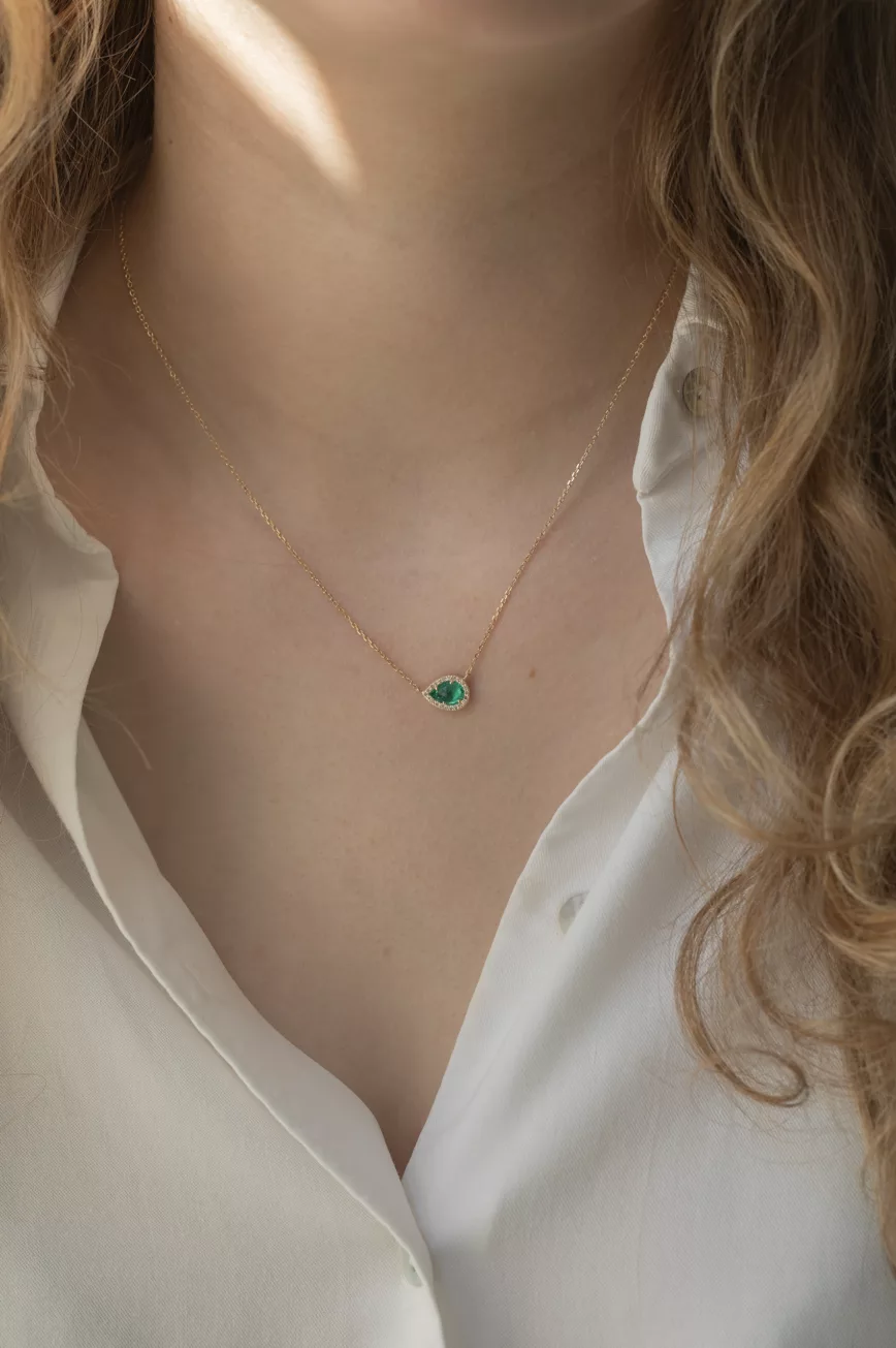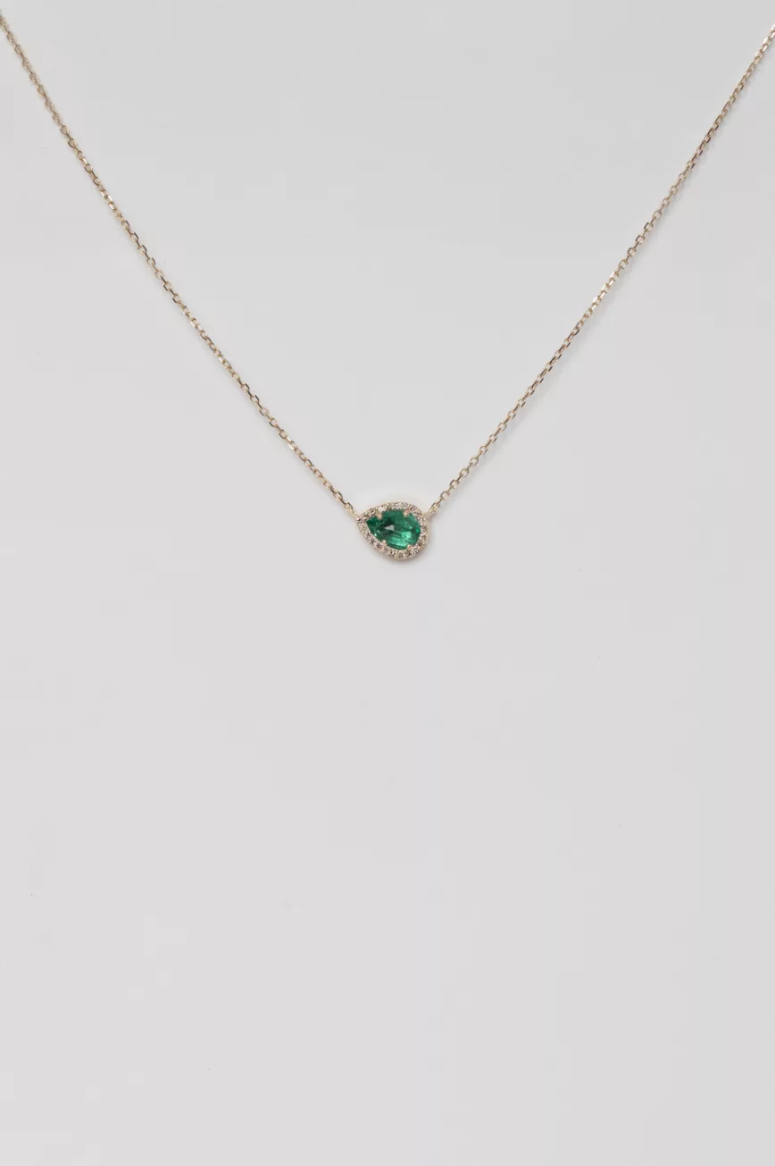 Emerald pear & diamonds angel necklace