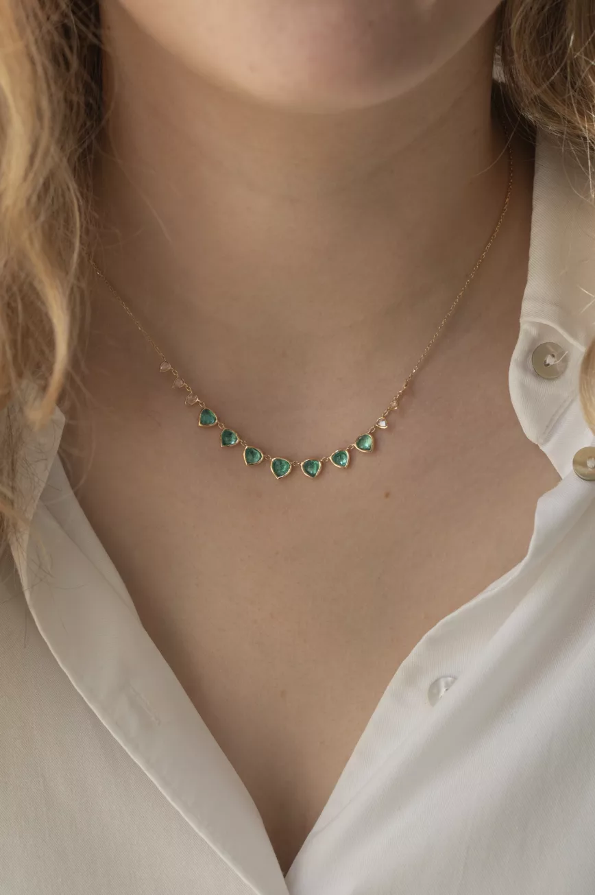 Multi emeralds & champagne diamonds necklace