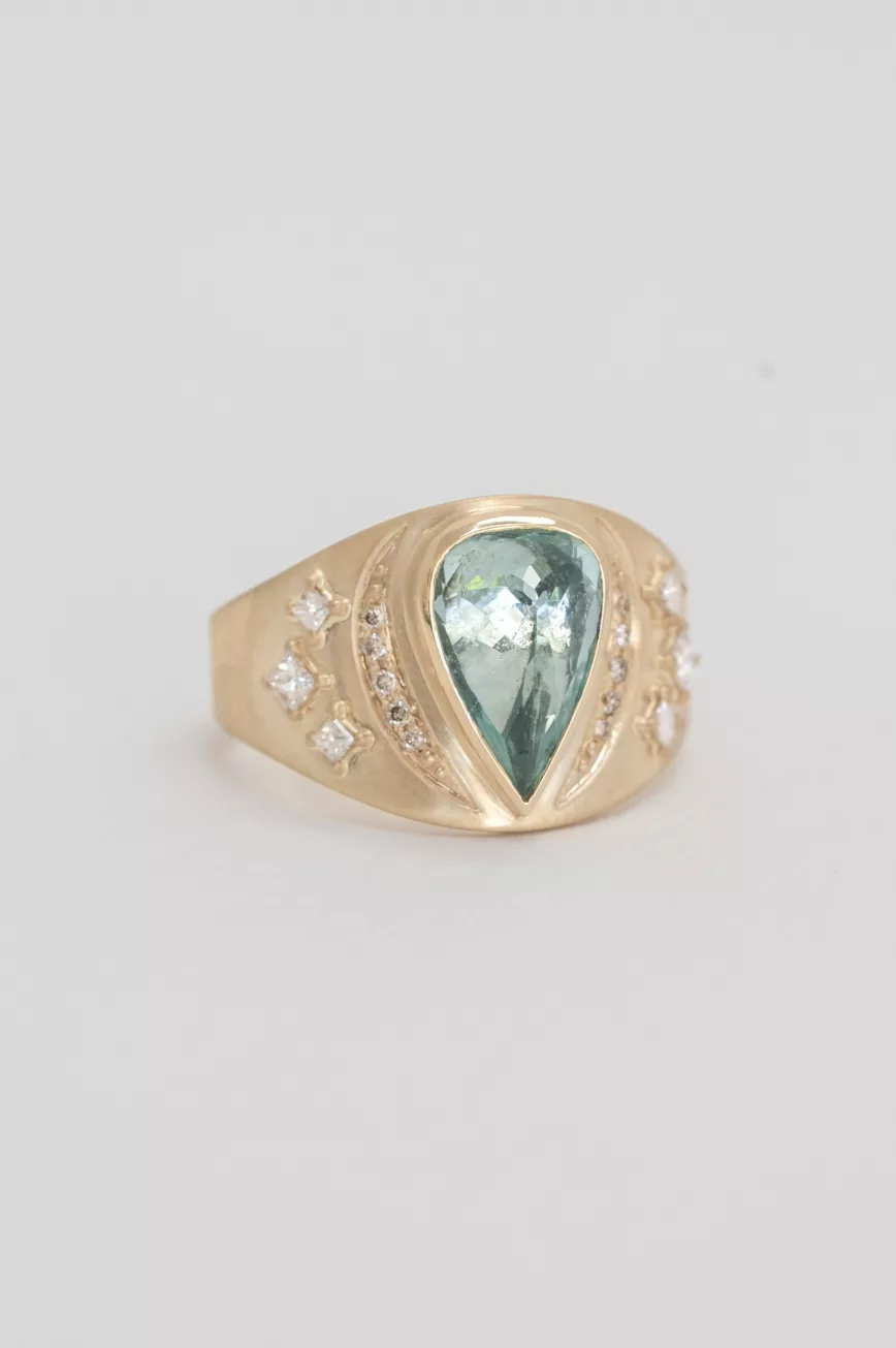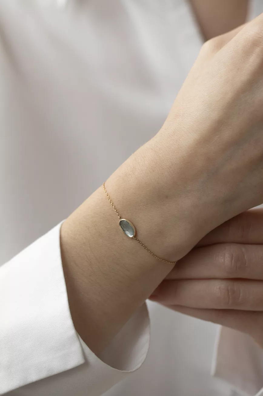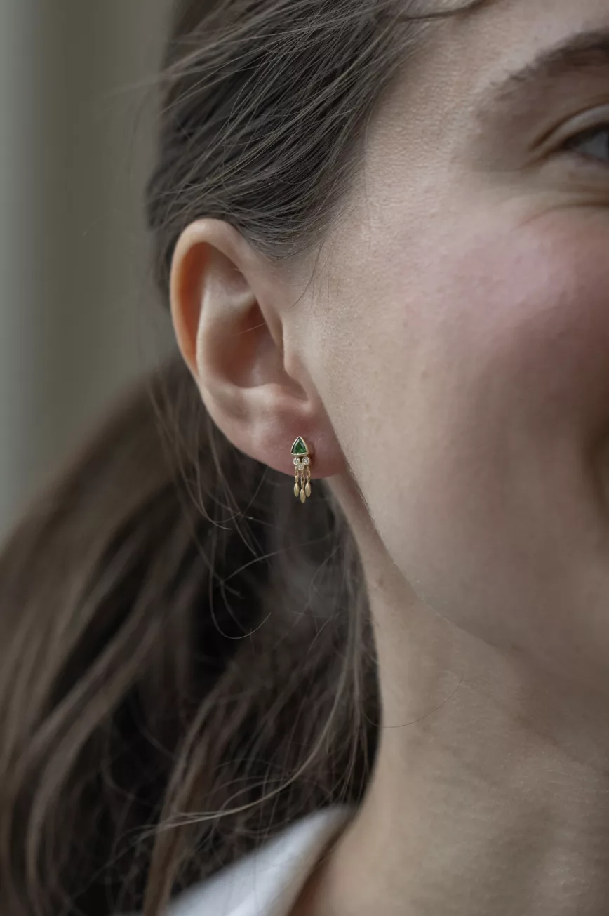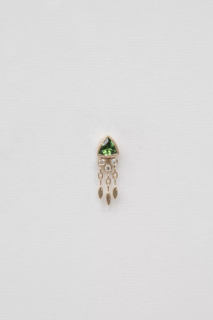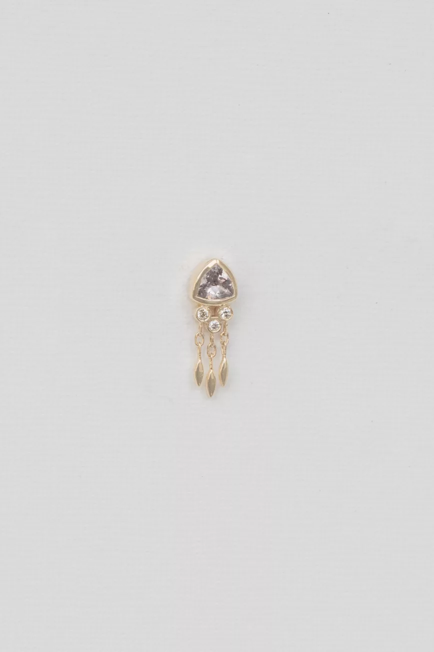Light pink tourmaline losange and baguette diamonds single hoop earring