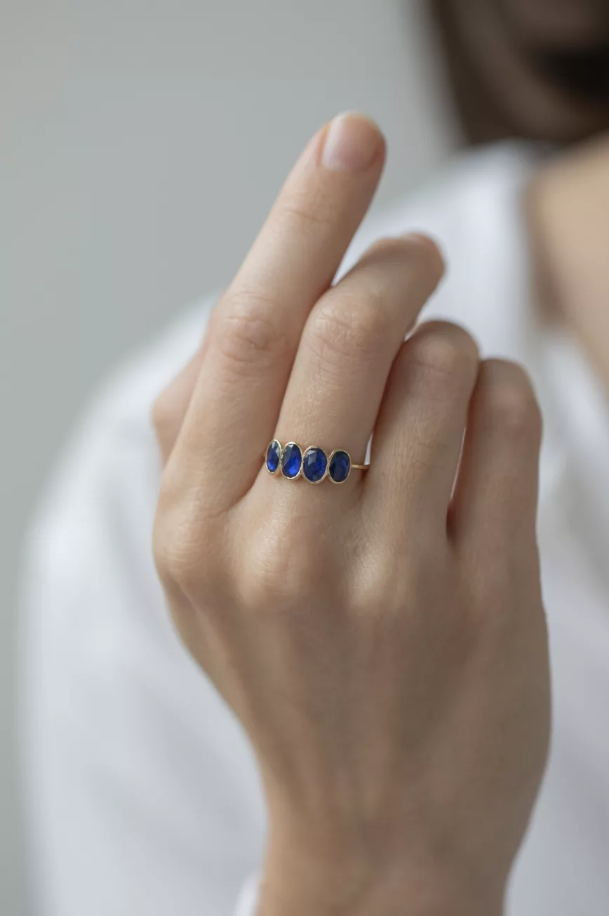 Blue marquise tourmaline & dangling diamonds hoop earrings