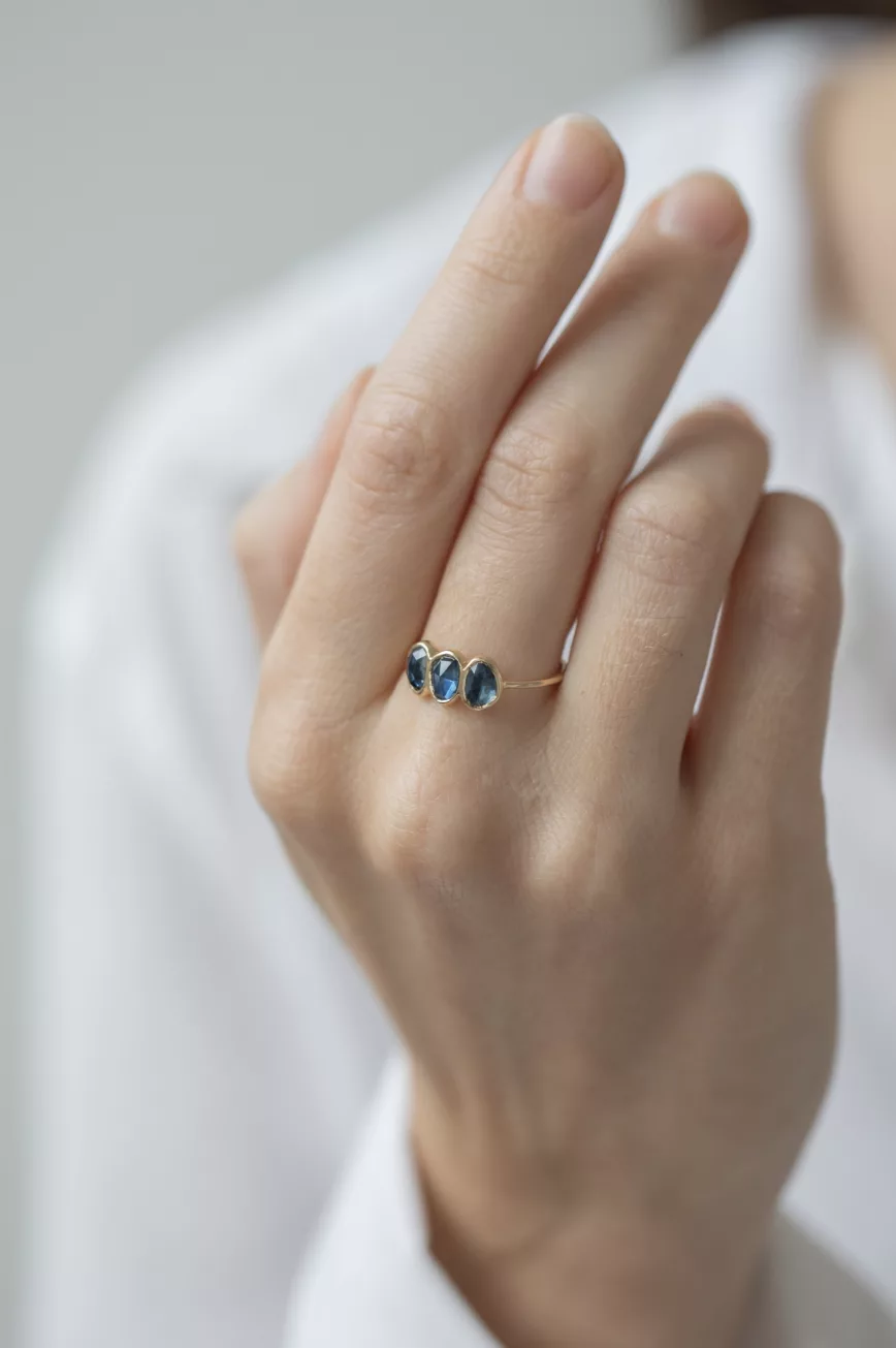 Blue marquise tourmaline & dangling diamonds hoop earrings