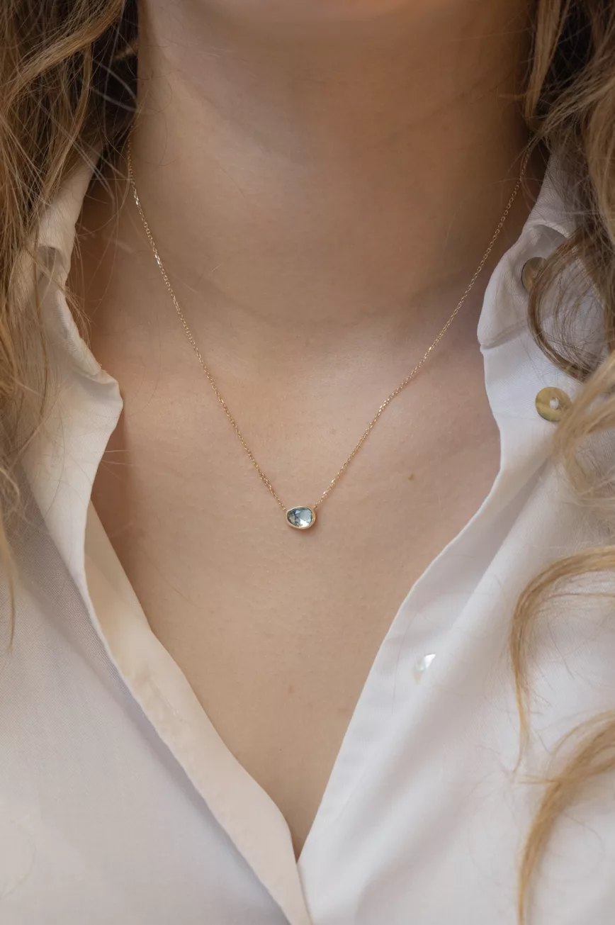 Small solid gold plate with sunbeams & dangling eye diamond necklace