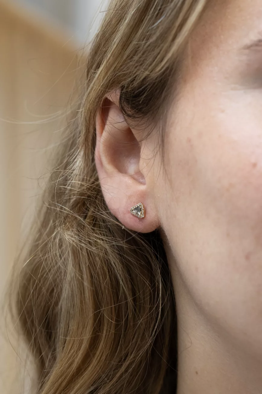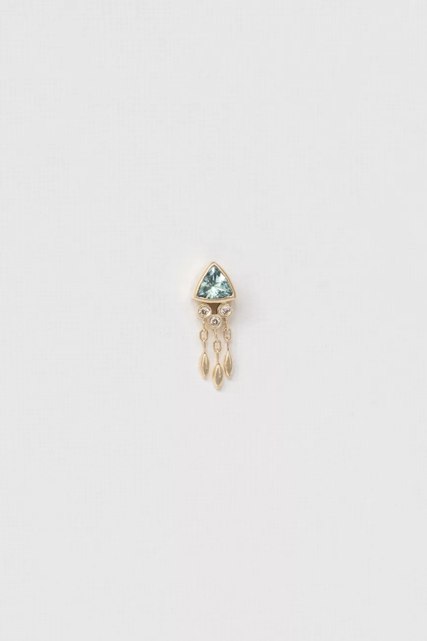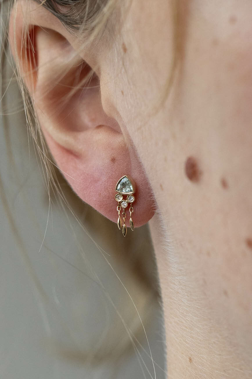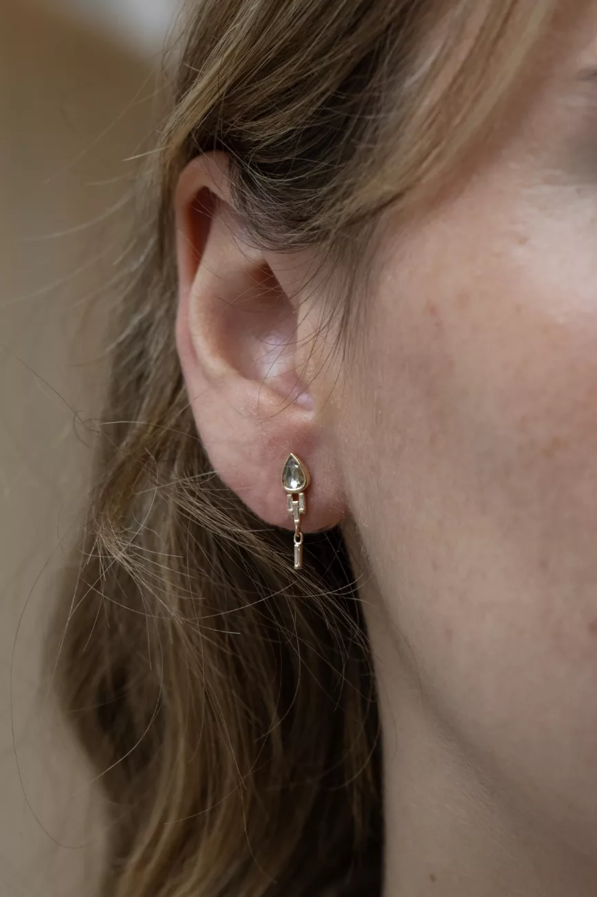 Dark turquoise tourmaline stud & baguette diamond earrings