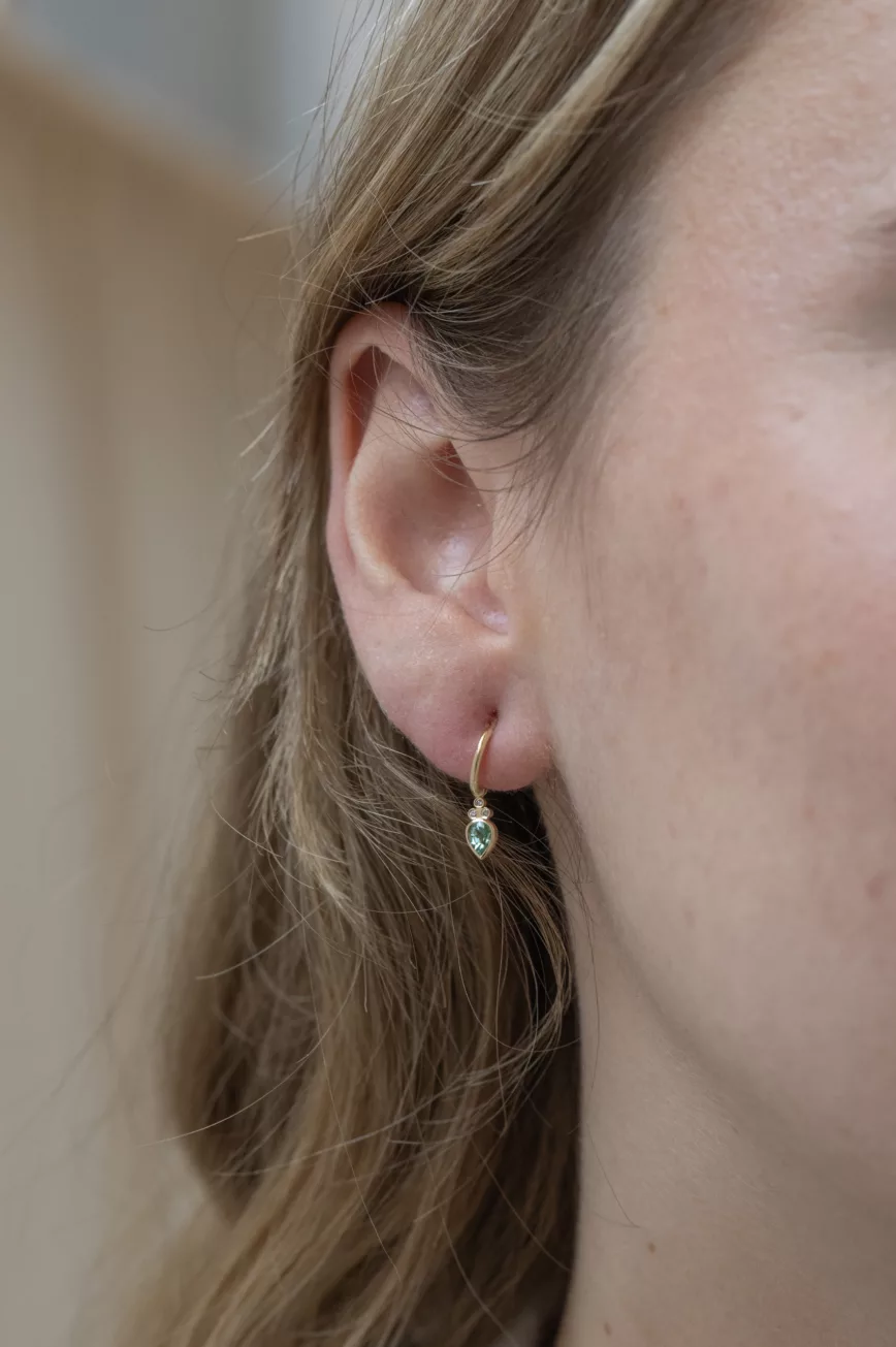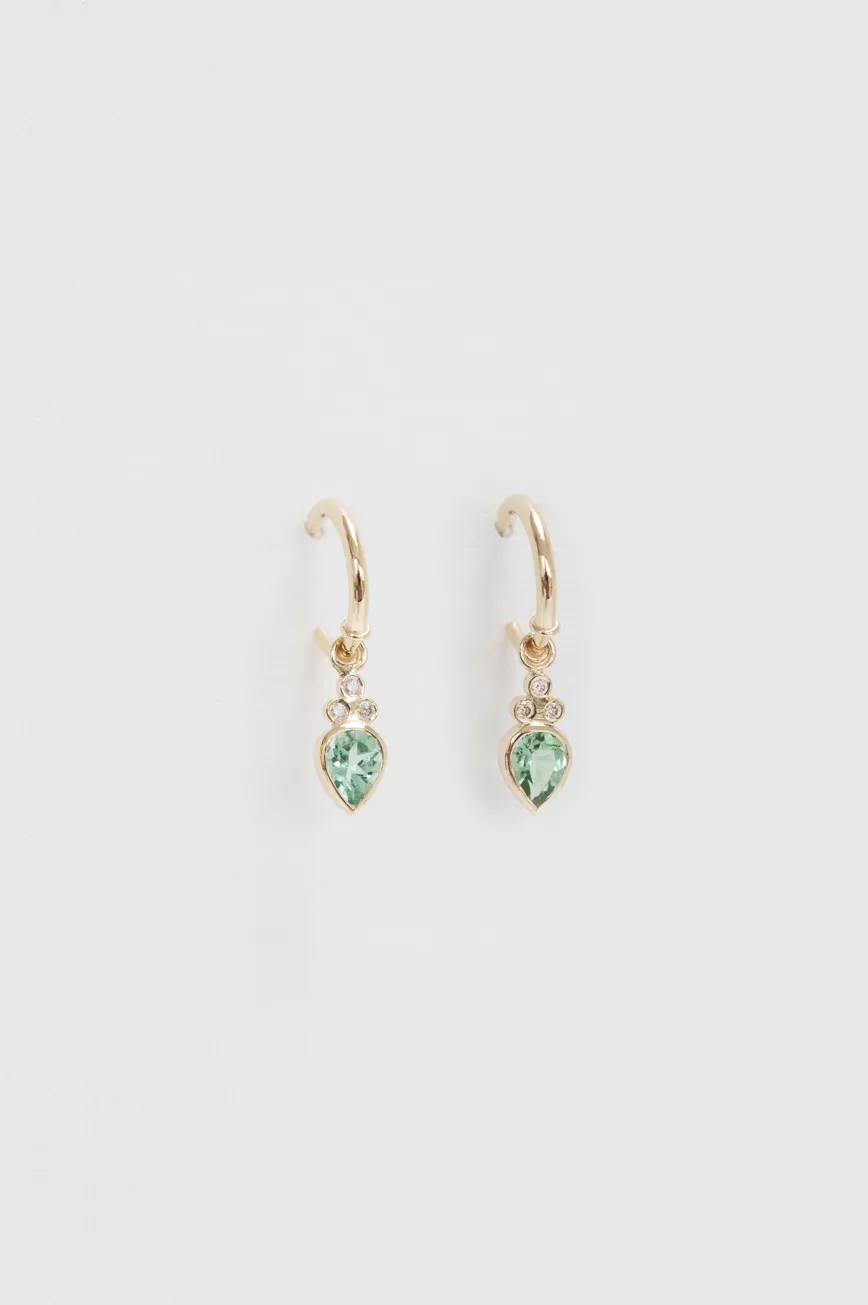 Light green Tourmaline Pear & Diamonds Hoop Earrings