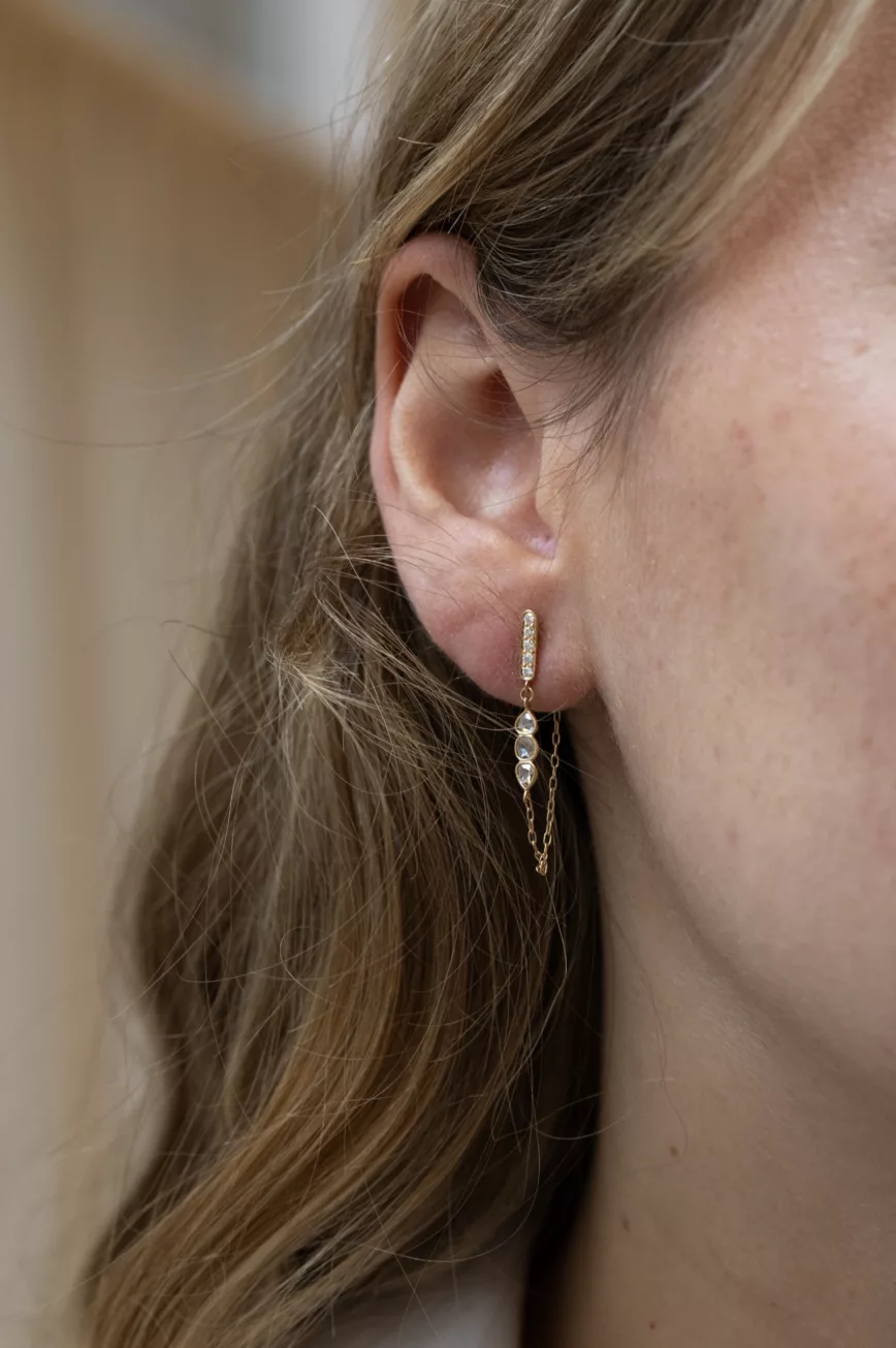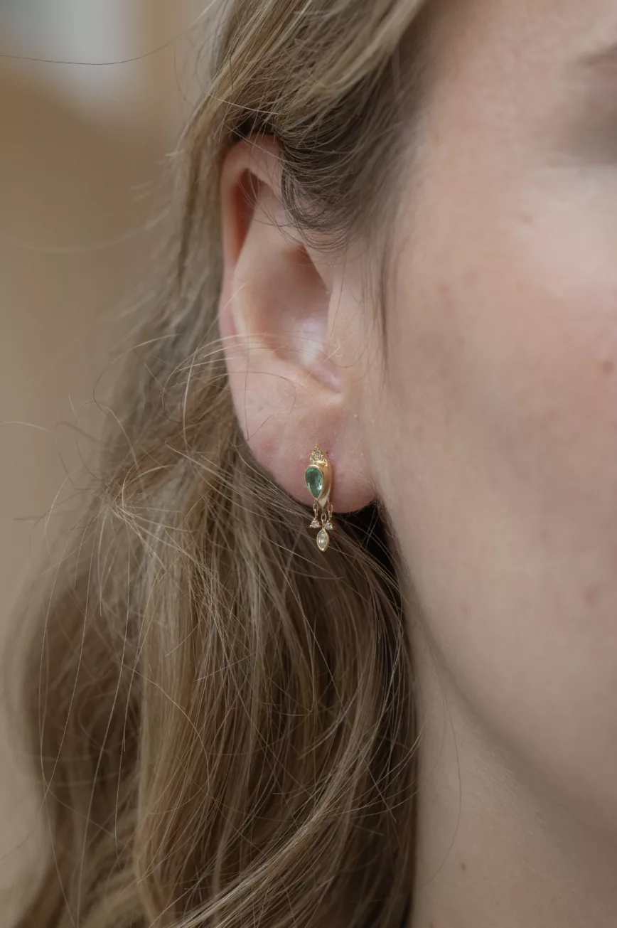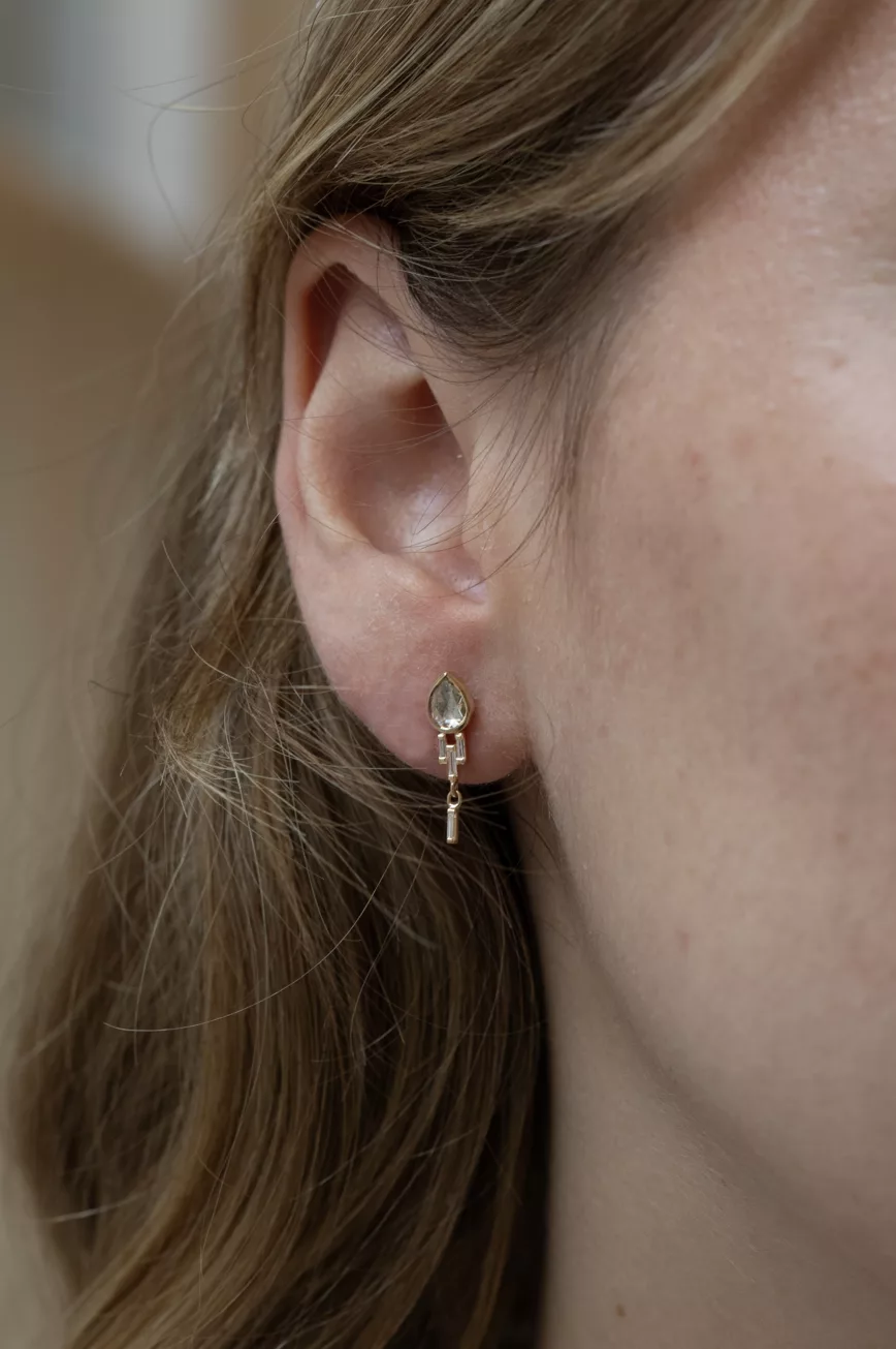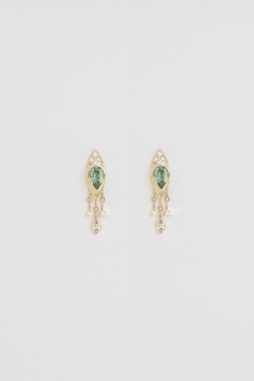 Marquise & moon crescents octogonal diamonds and dangling details earrings