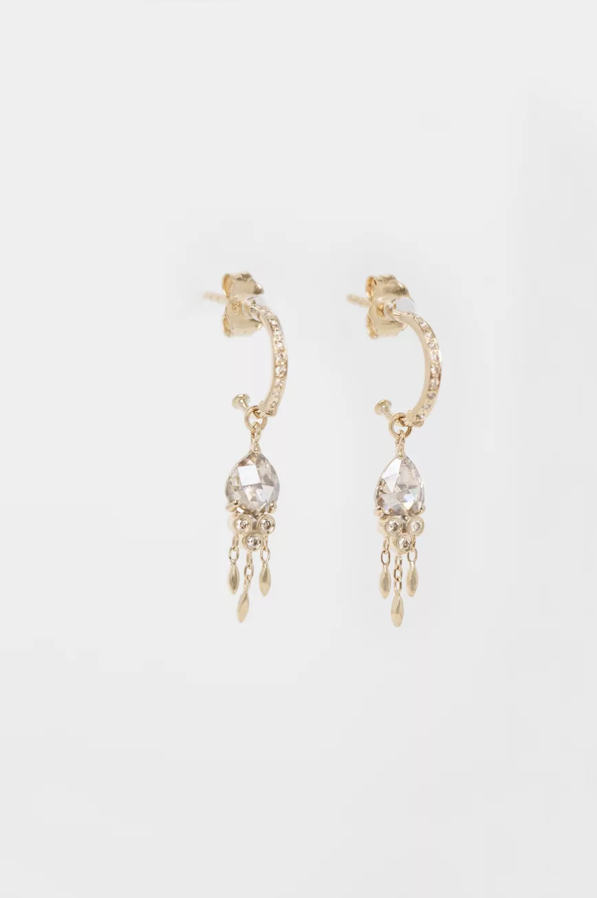 Champagne diamond rose cut & diamonds angling jellyfish earrings