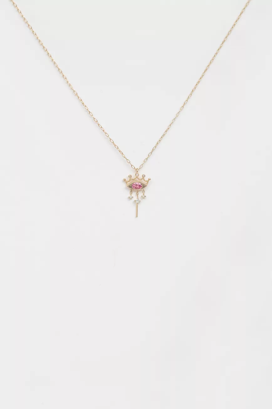 Pink spinel and diamonds crown necklace