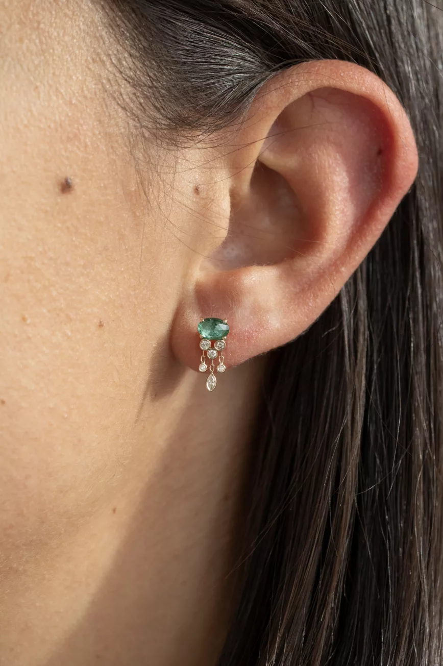 Emerald marquise eye and dangling diamonds necklace