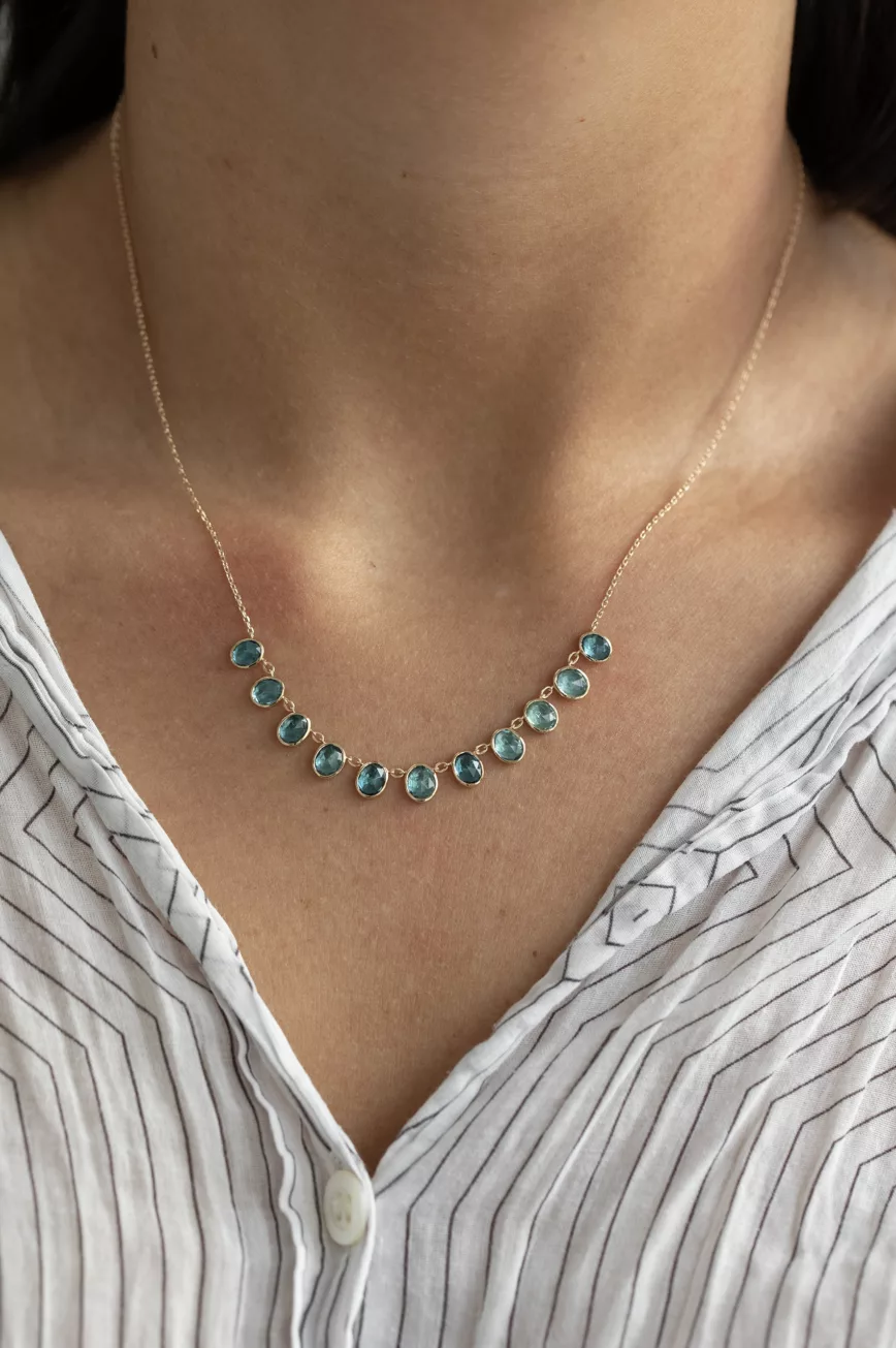 Multi blue tourmalines necklace