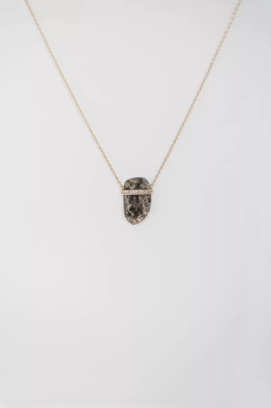Watermelon tourmaline and grey diamond with dangling detail necklace