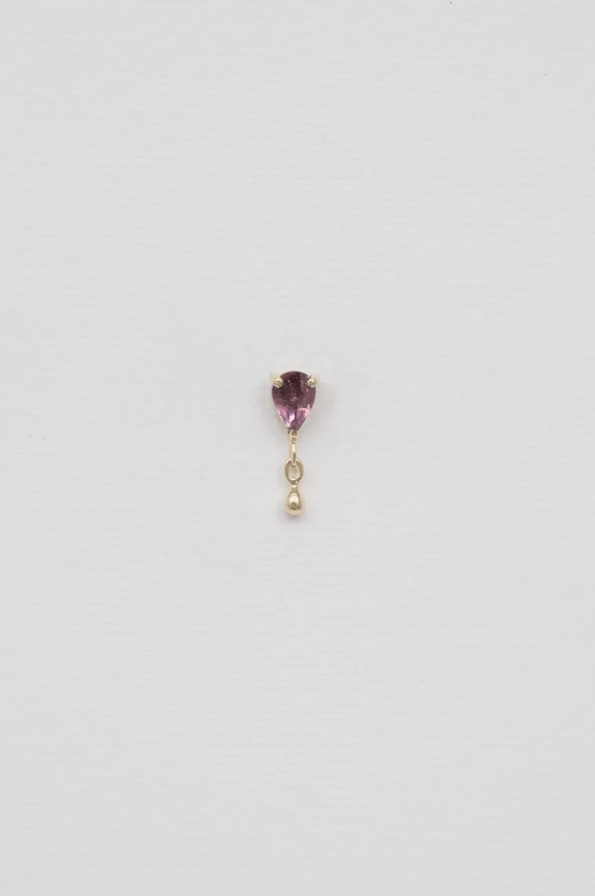 Pink tourmaline pear and dangling piercing earring