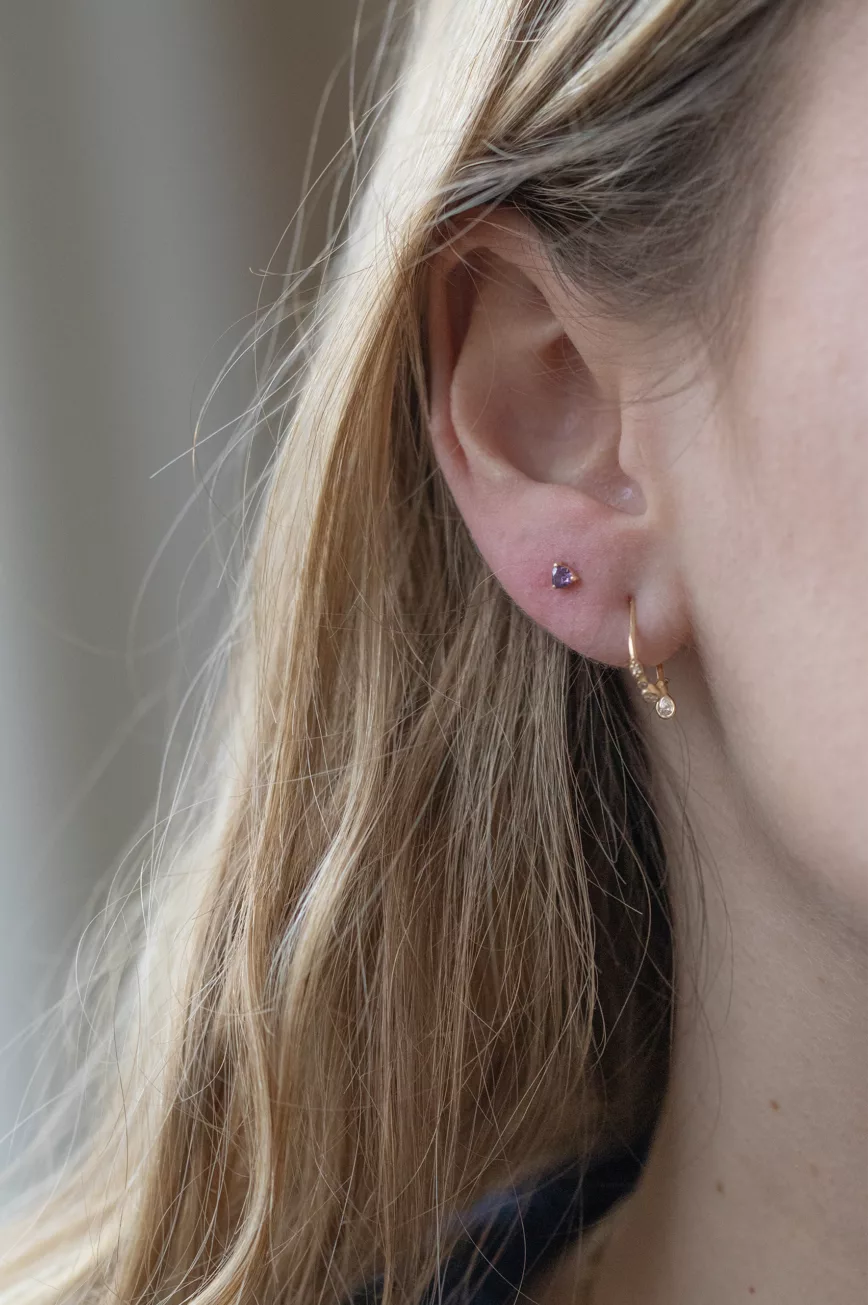 Purple spinel stud piercing