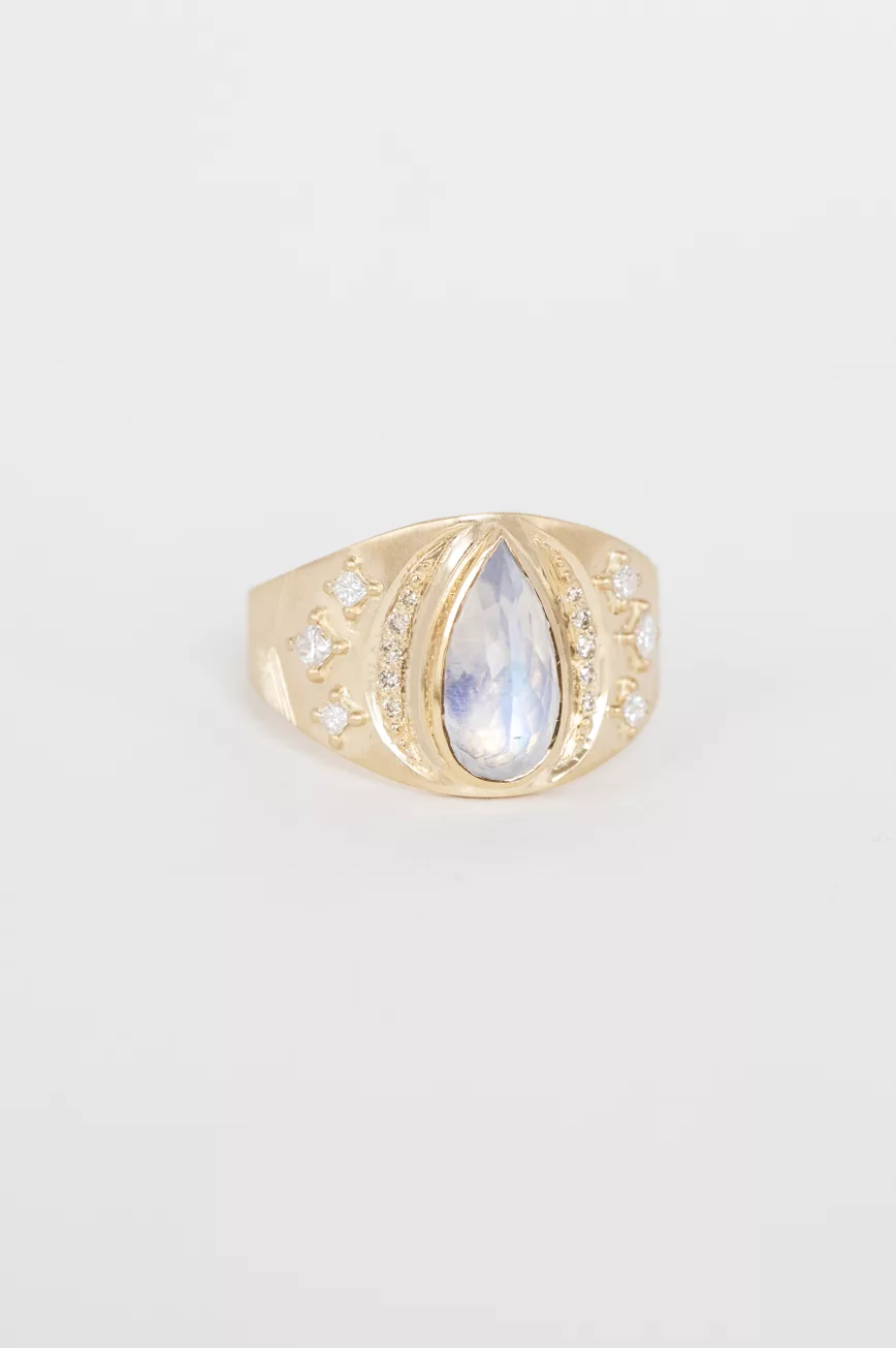 Moonstone pear and diamonds ring