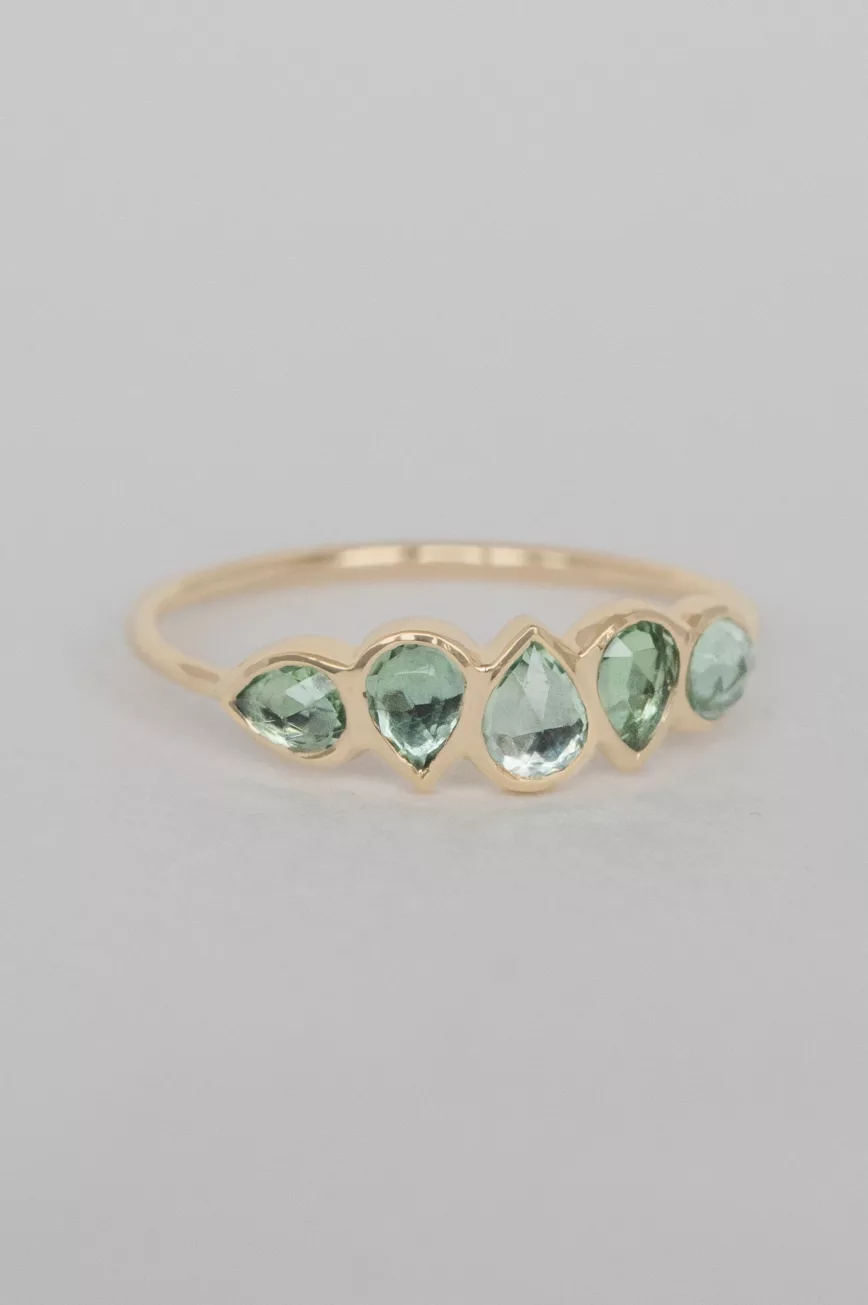 Multi light green tourmaline ring