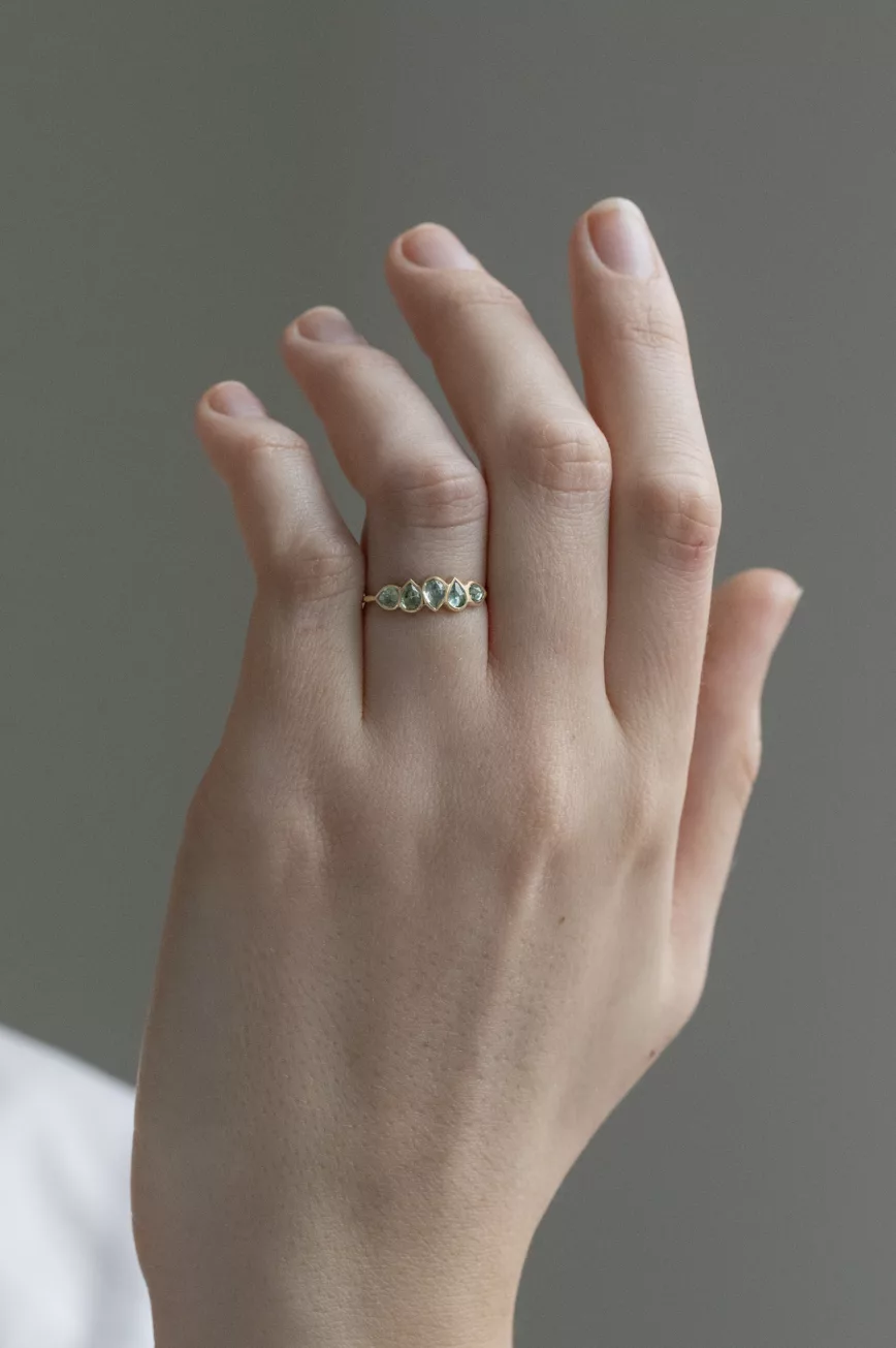 Multi green tourmaline ring