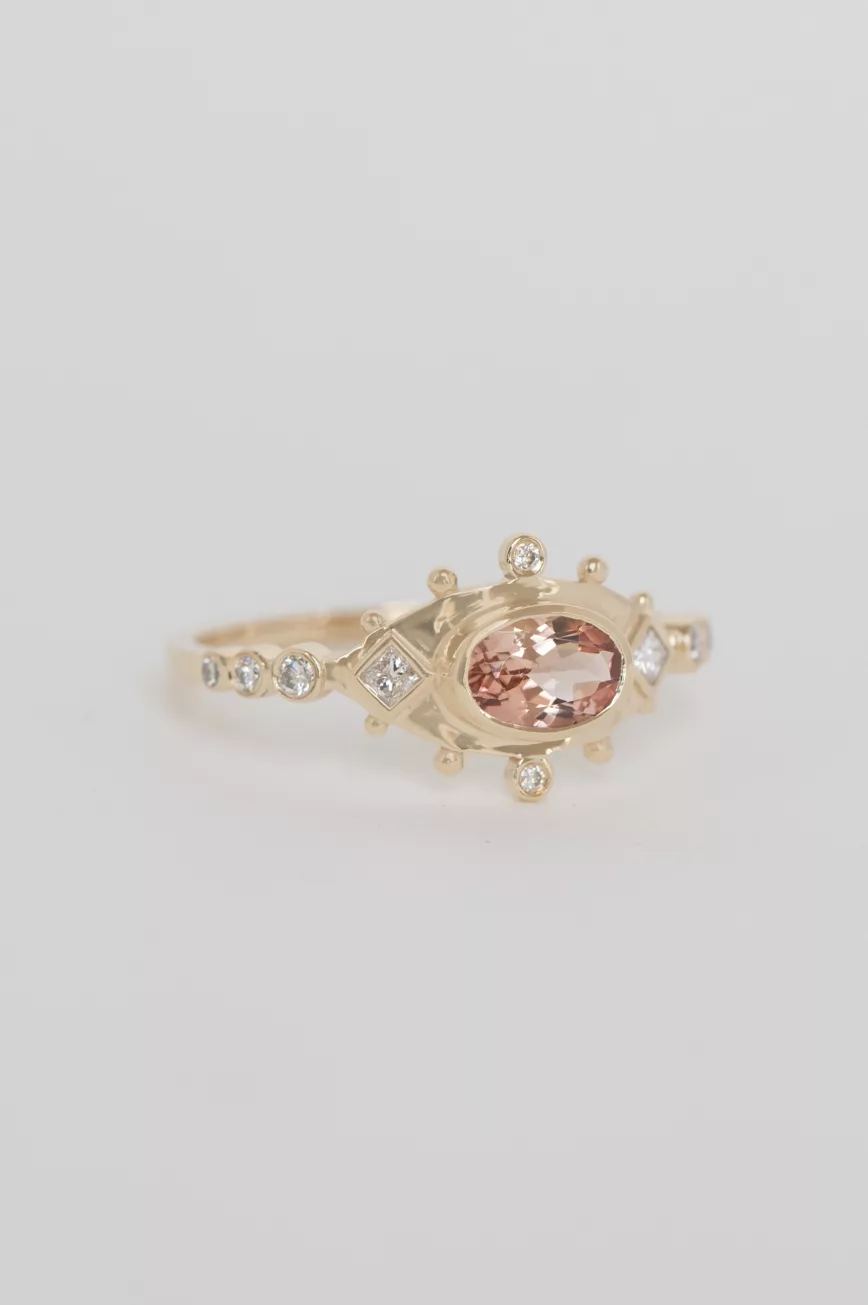Peach pink tourmaline and diamonds stella ring
