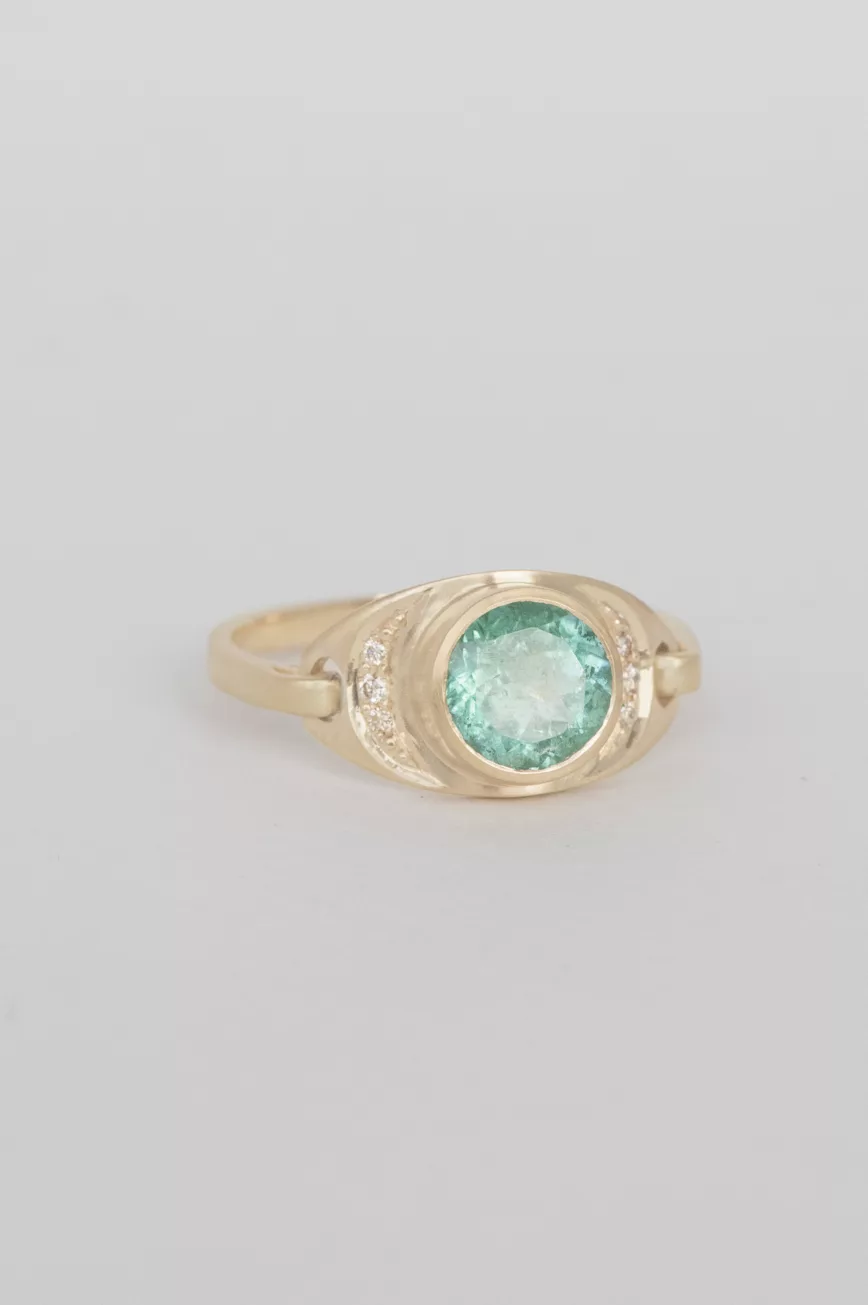Emerald moon crescent and diamonds ring