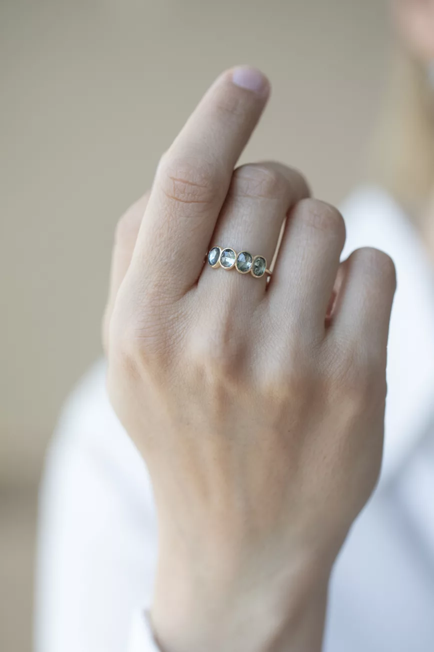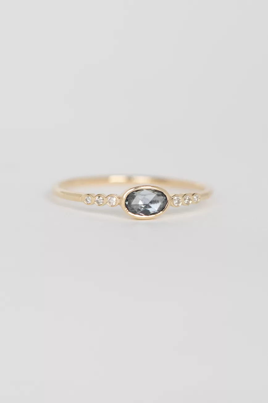 Blue grey sapphire and six diamonds ring