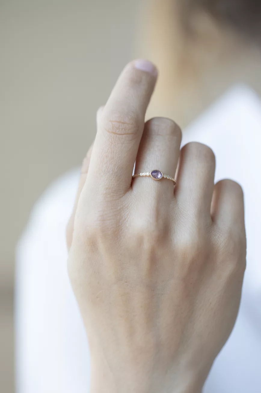 Purple tourmaline cabochon faye ring