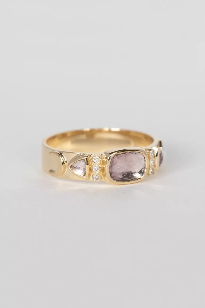 - Light pink tourmaline and diamond moons ring$2,725.01