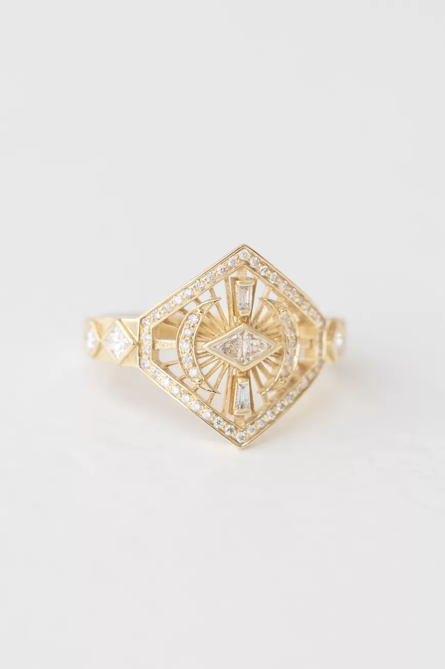 Marquise & moon crescents octogonal diamonds and dangling details earrings