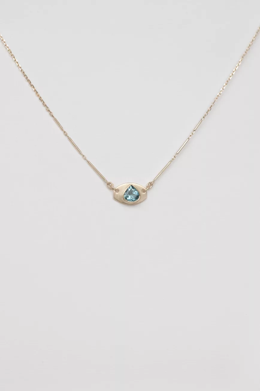 Light pink tourmaline marquise eye & dangling diamond necklace