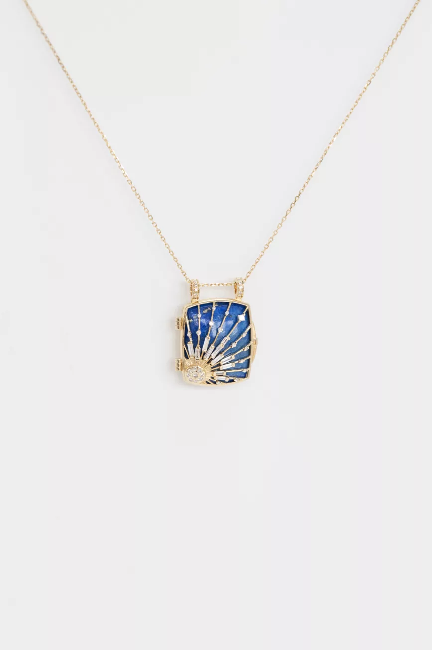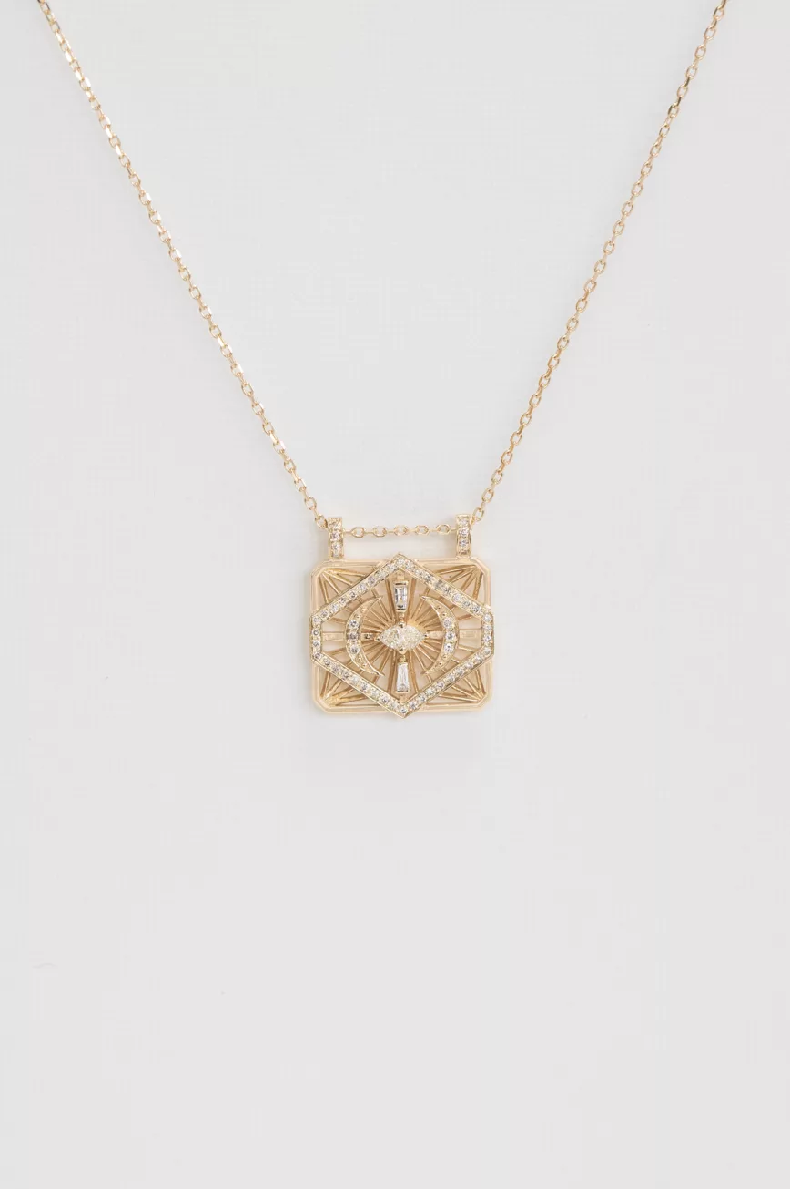 Grey diamond rosecut & diamond moon open sun chain necklace