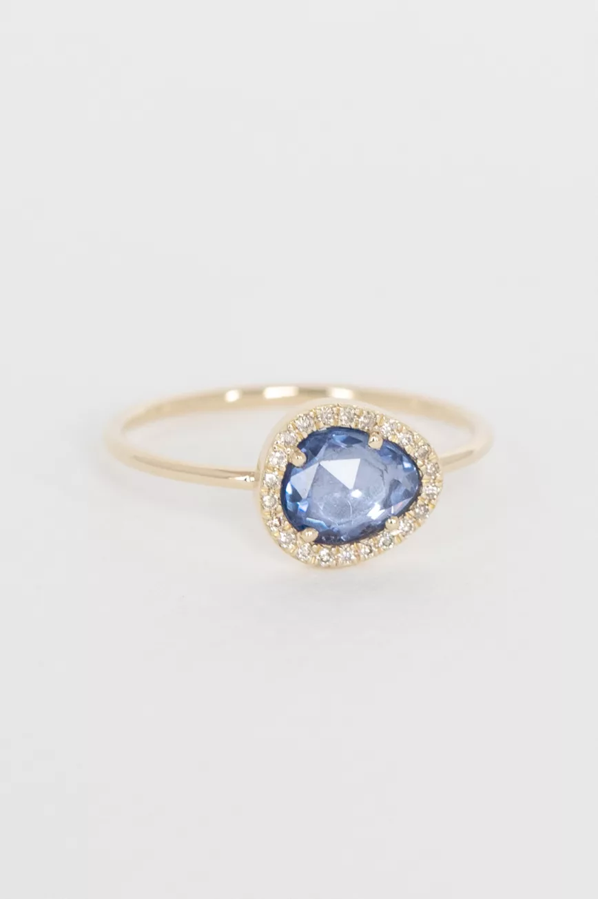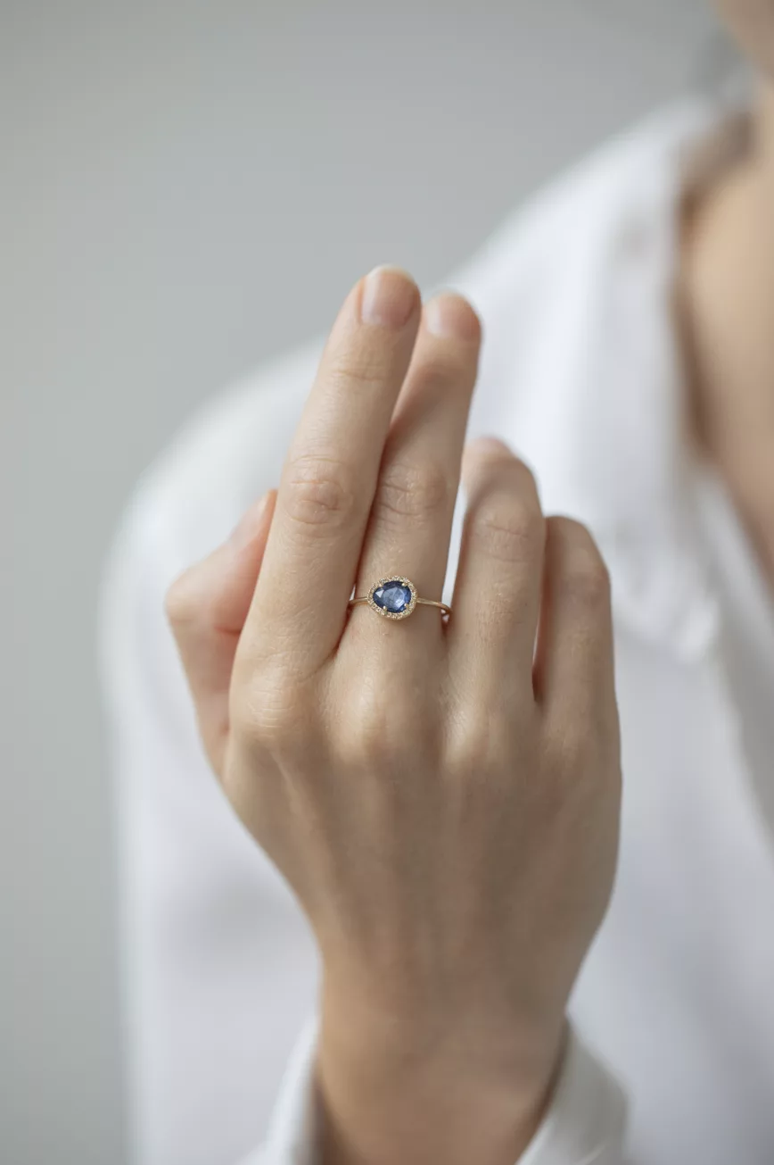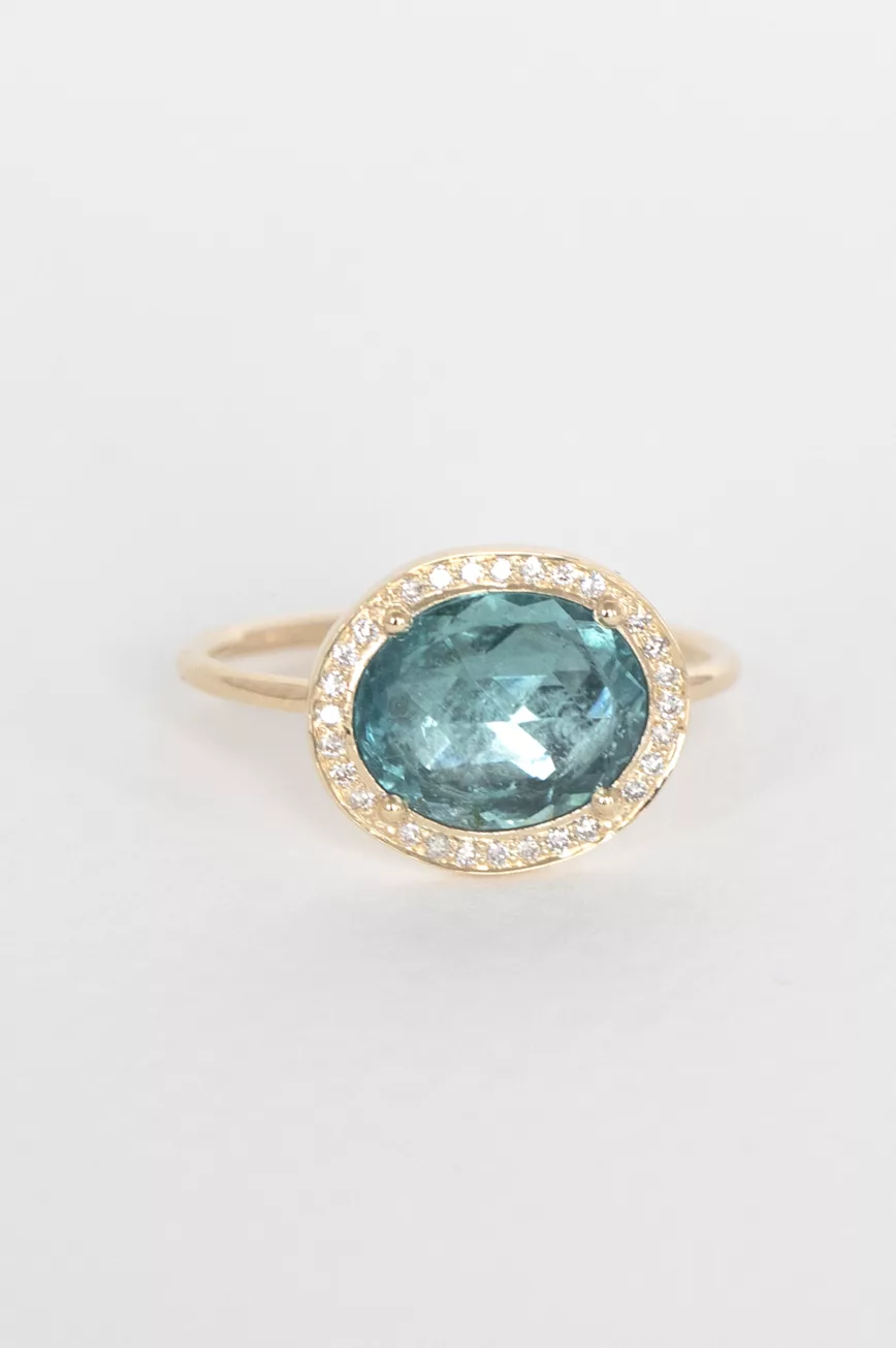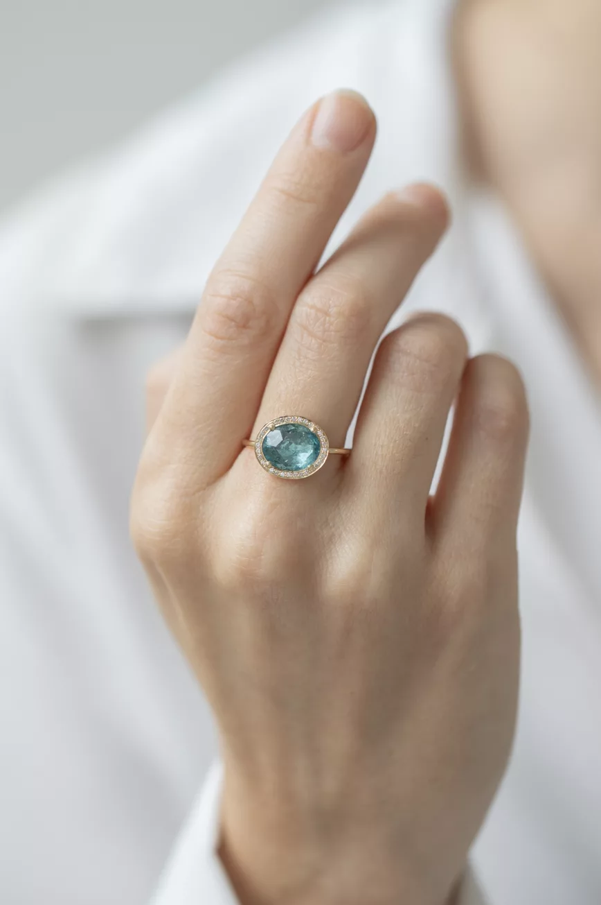 Light pink tourmaline losange and baguette diamonds single hoop earring