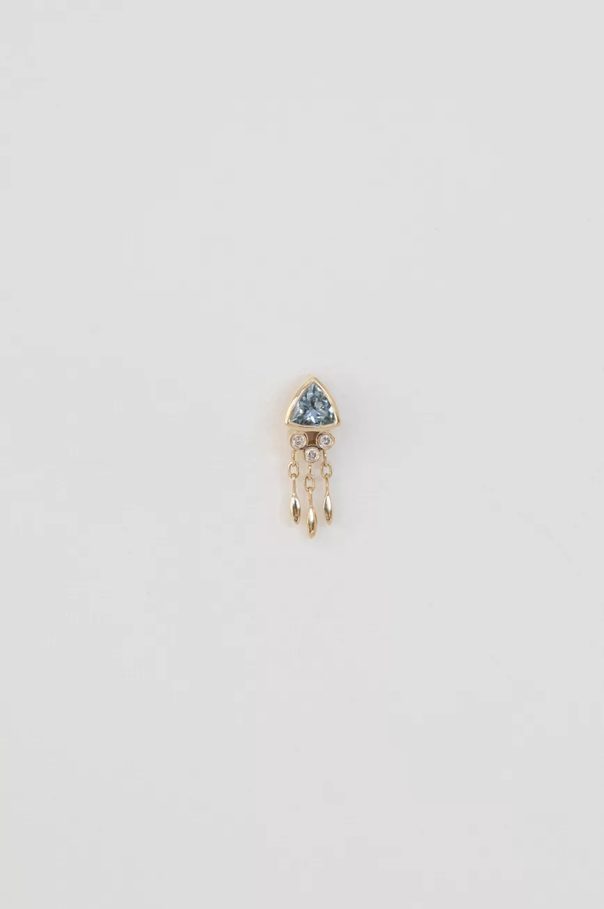 Pink tourmaline losange and baguette diamonds single hoop earring