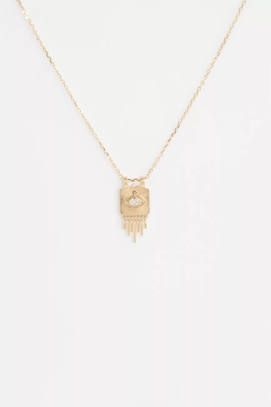 - Small solid gold plate with sunbeams & dangling eye diamond necklace$1,969.68