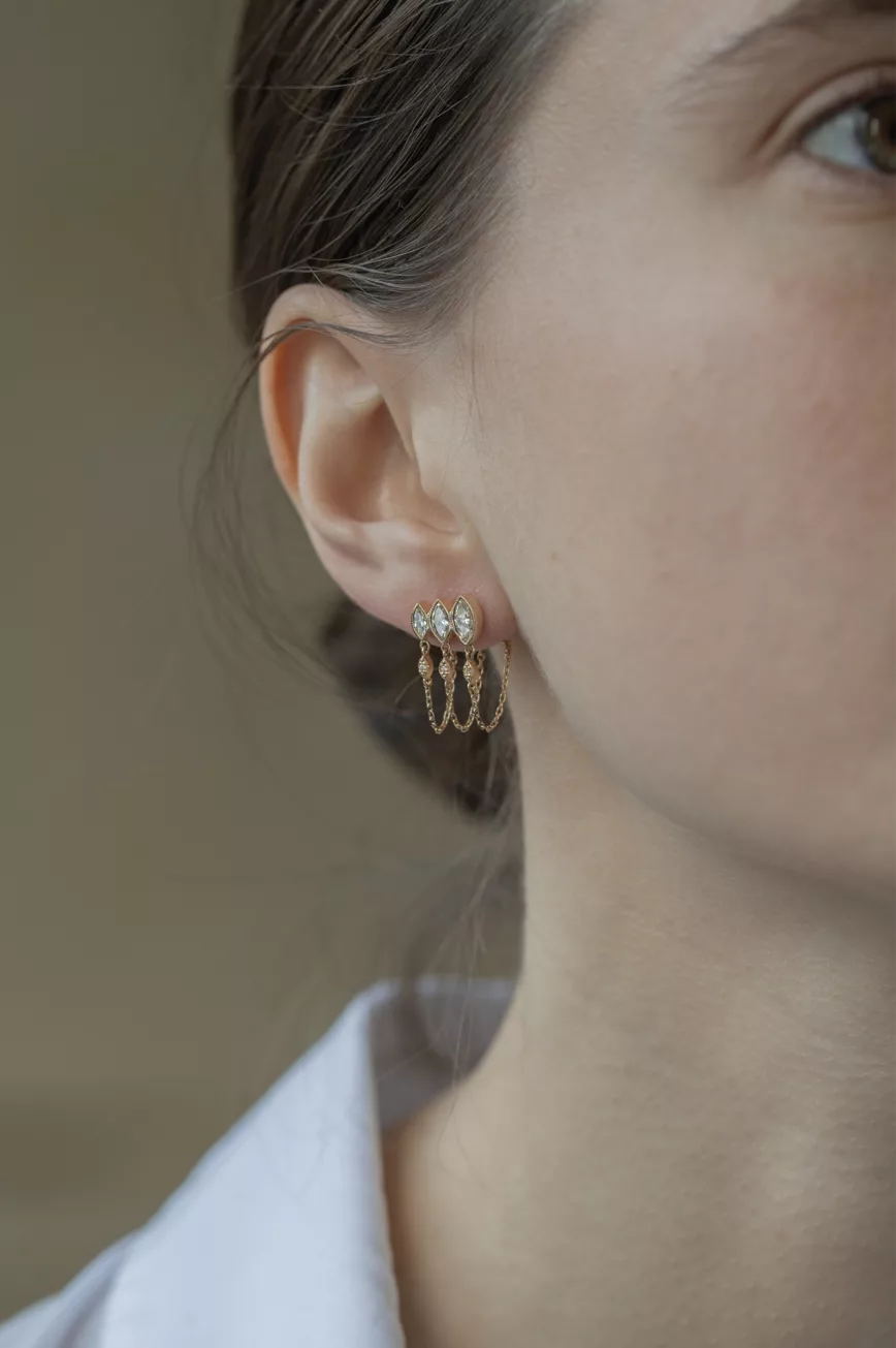 Light green Tourmaline Pear & Diamonds Hoop Earrings