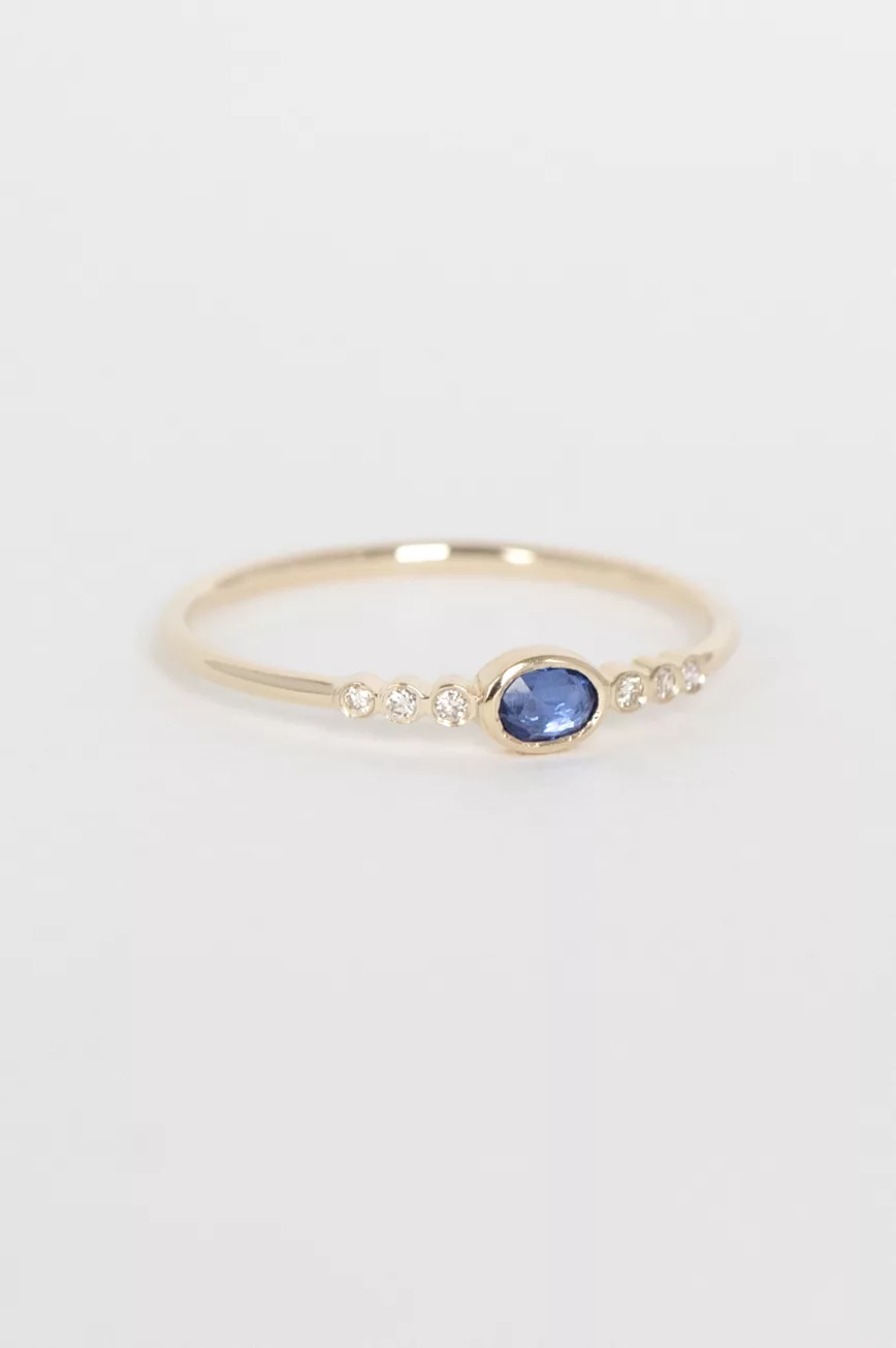 Blue sapphire and six diamonds ring