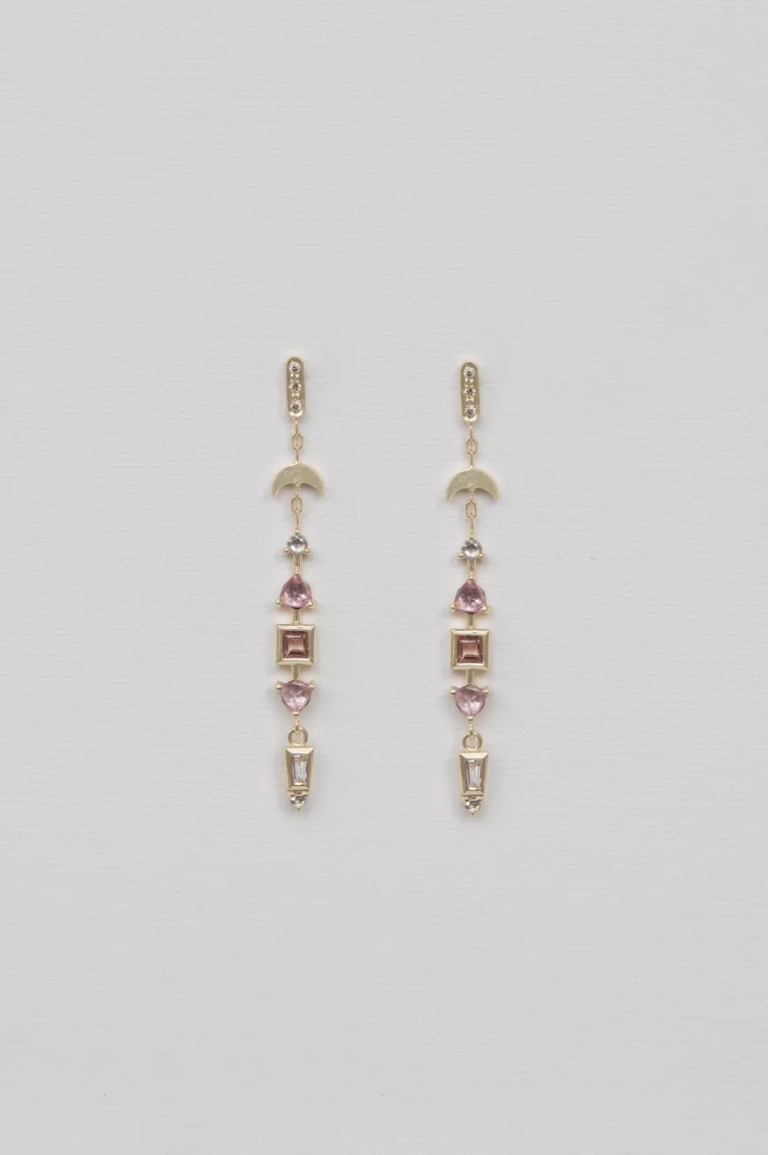 Marquise & moon crescents octogonal diamonds and dangling details earrings