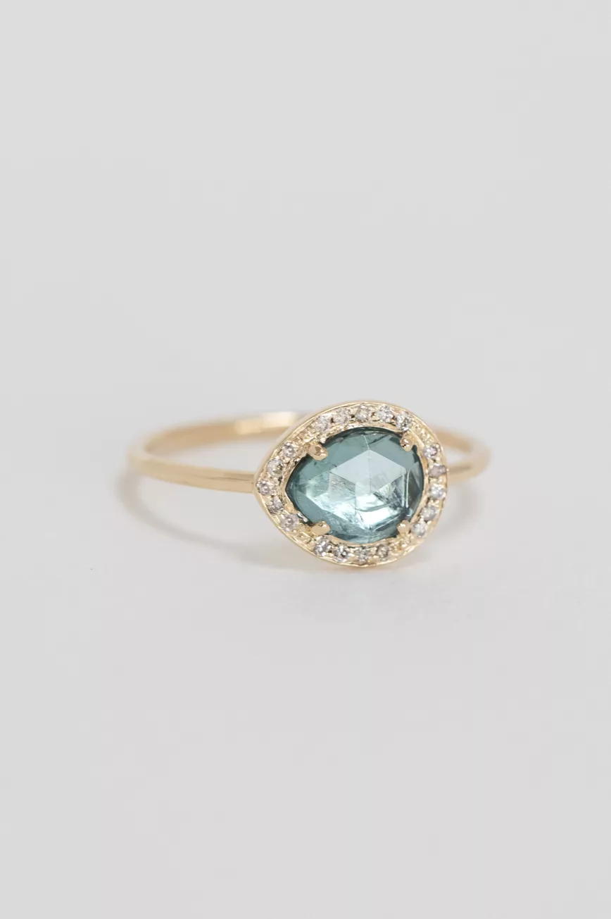 Turquoise tourmaline cabochon faye ring