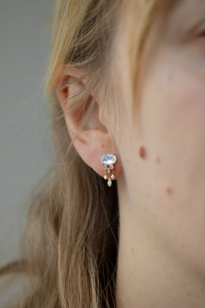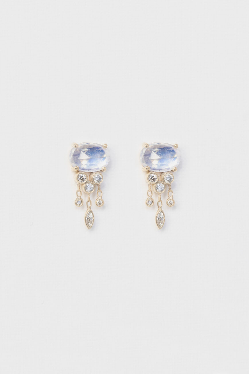 Moonstone cabochon & dangling diamonds jellyfish necklace