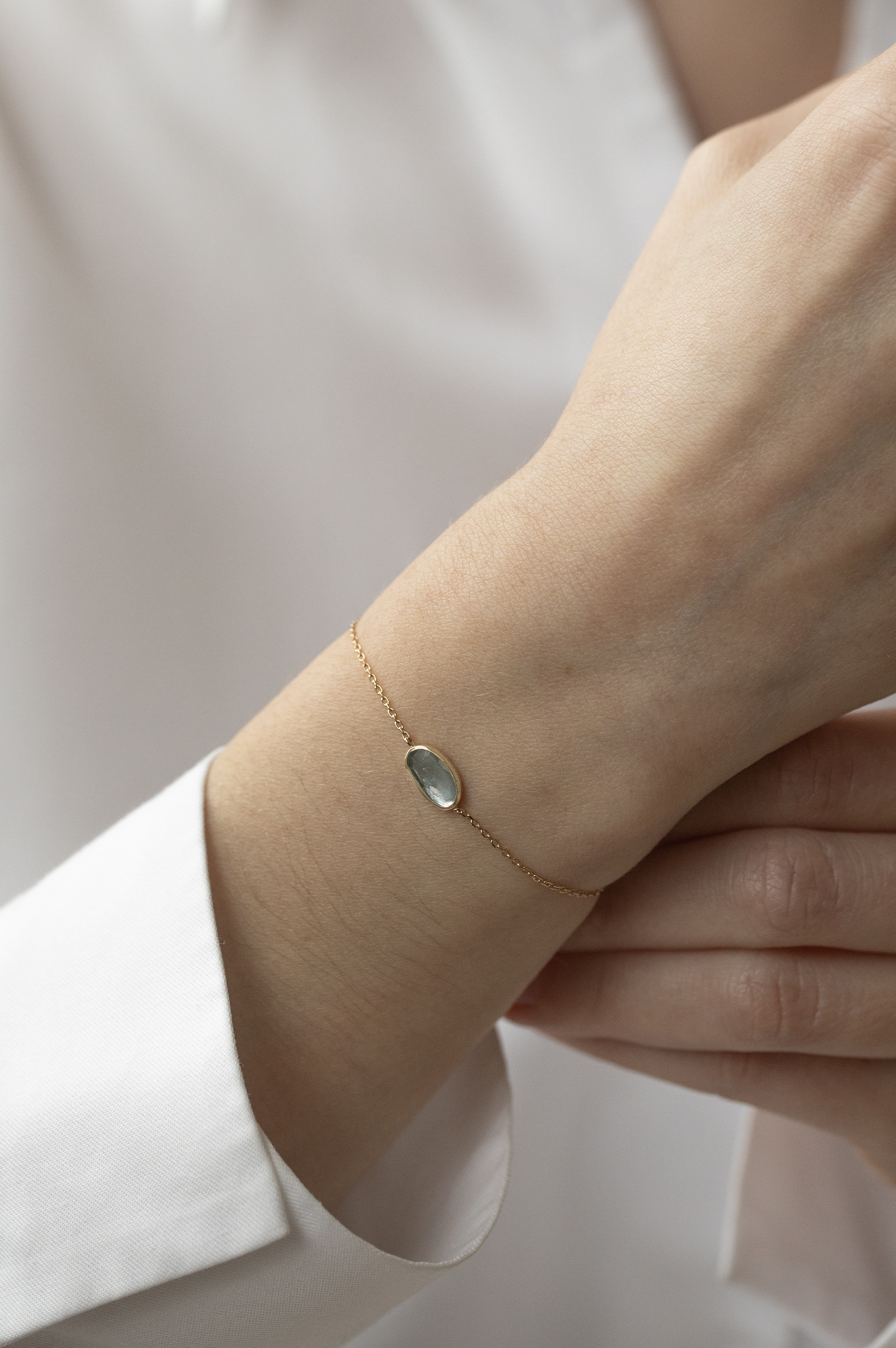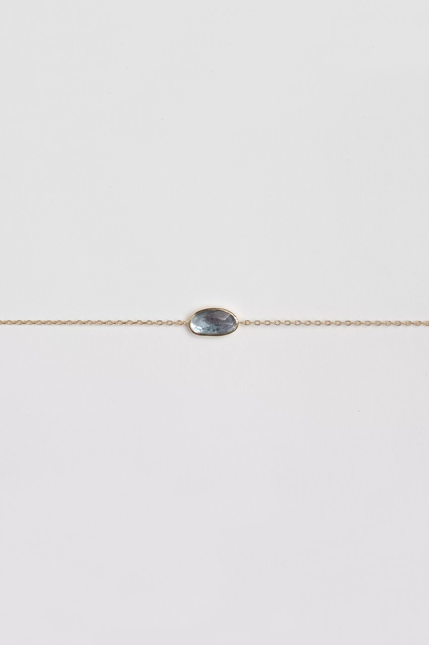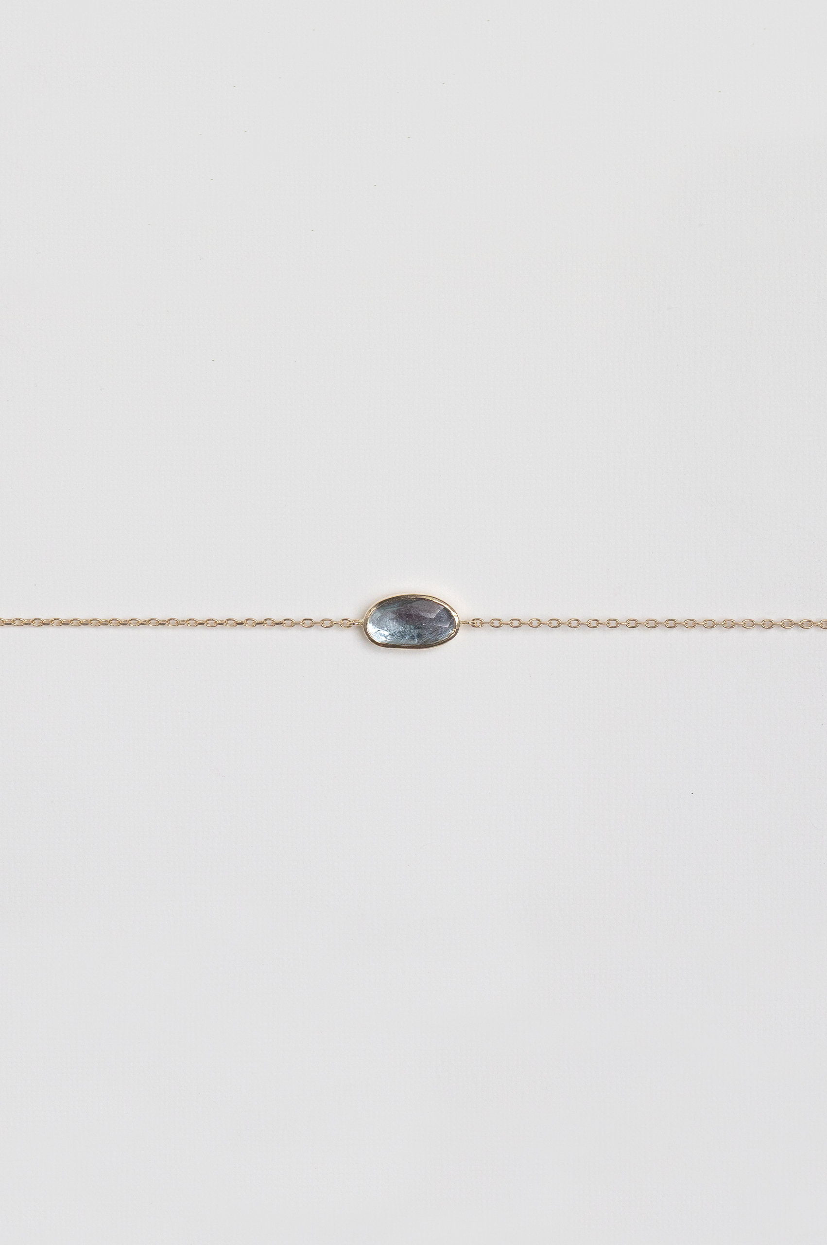 Celine Daoust 14k light yellow gold chain bracelet with one blue tourmaline.The stone comes in a gradient of deep blue.