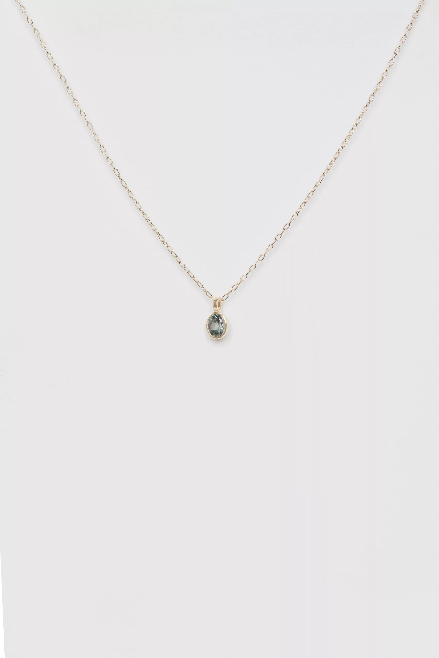 Celine Daoust 14k light yellow gold maya light blue tourmaline special cut necklace. The stone comes in a gradient of turquoise.
