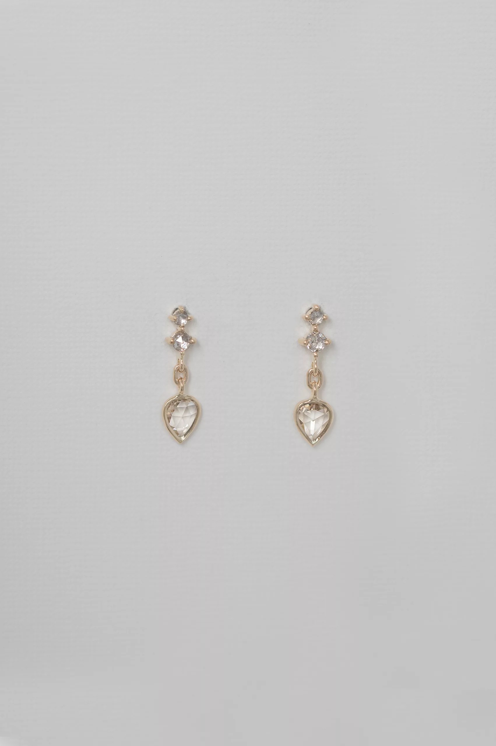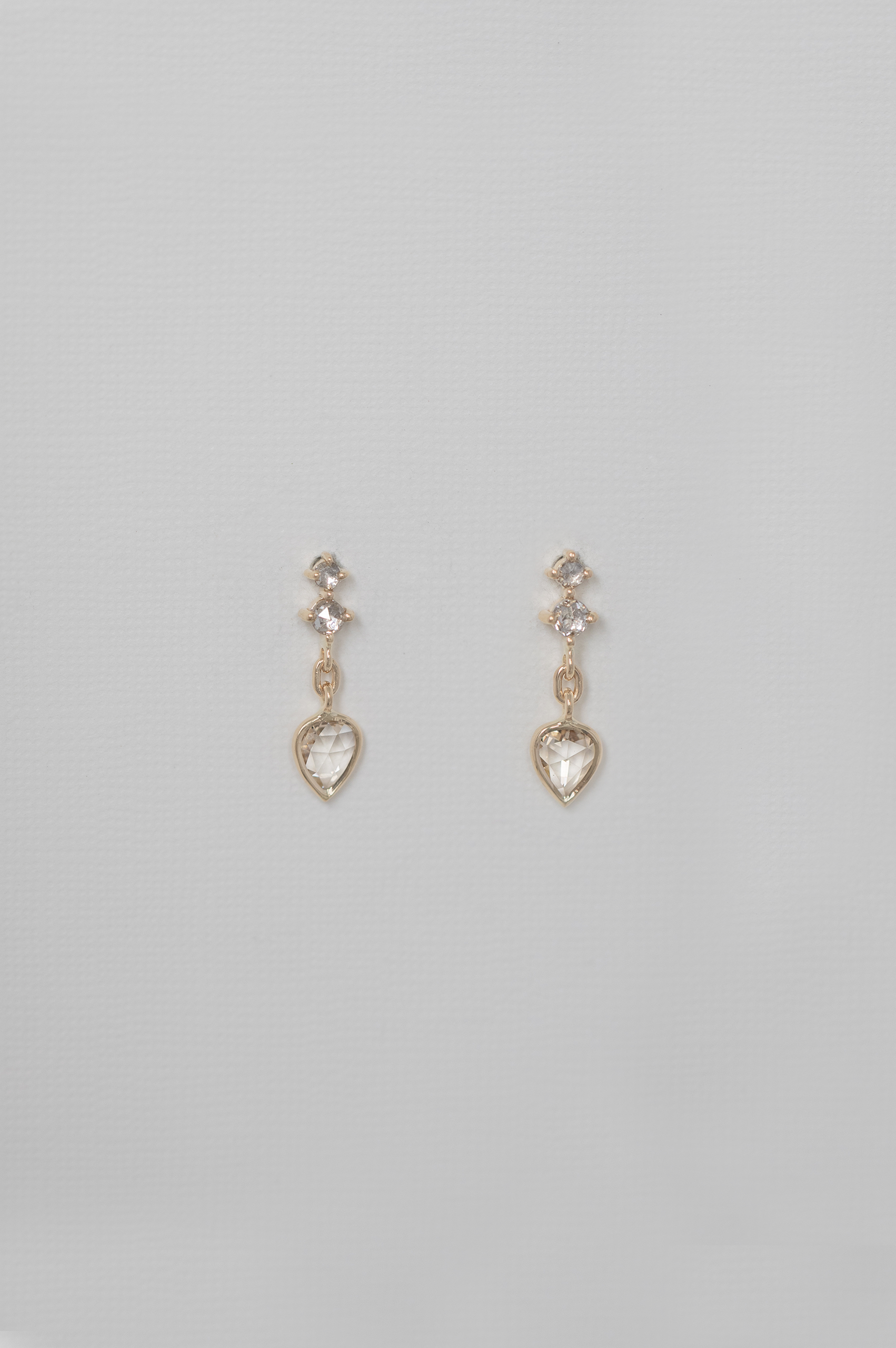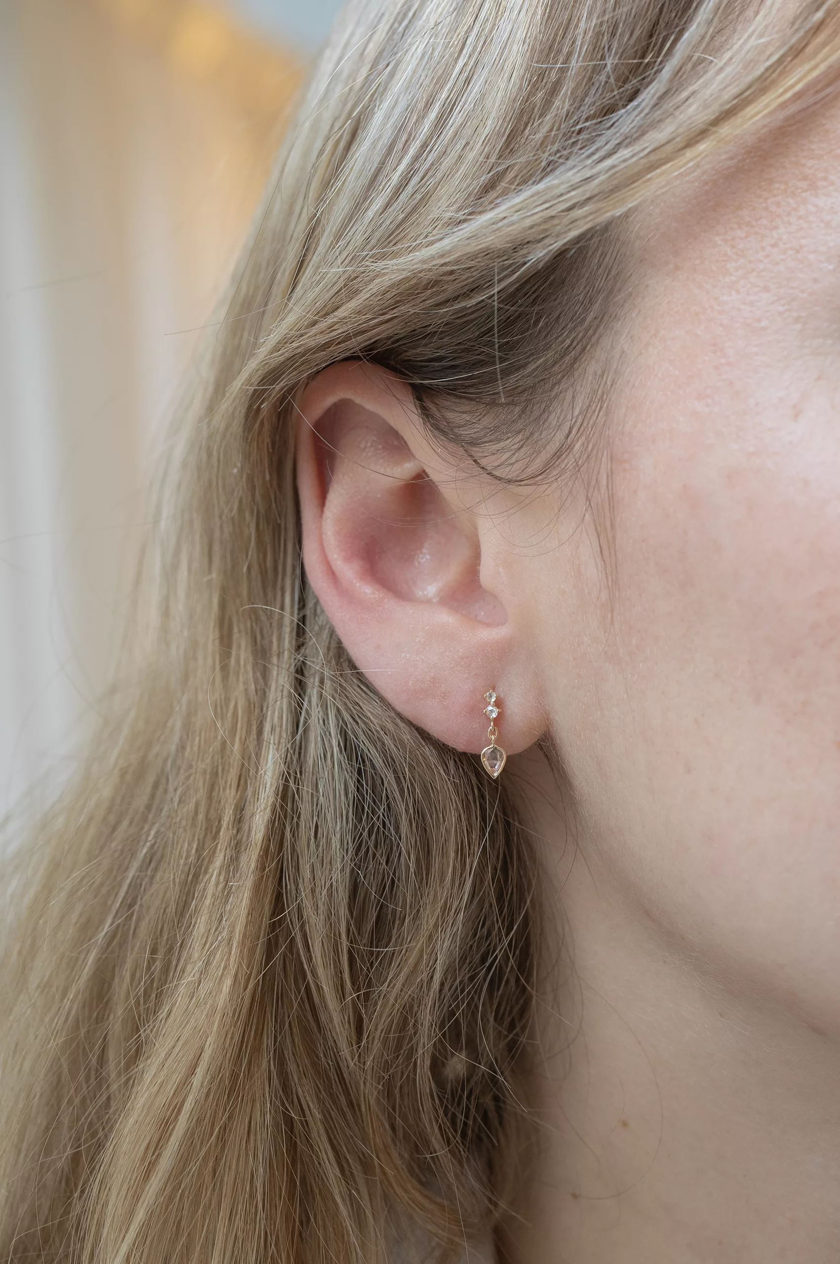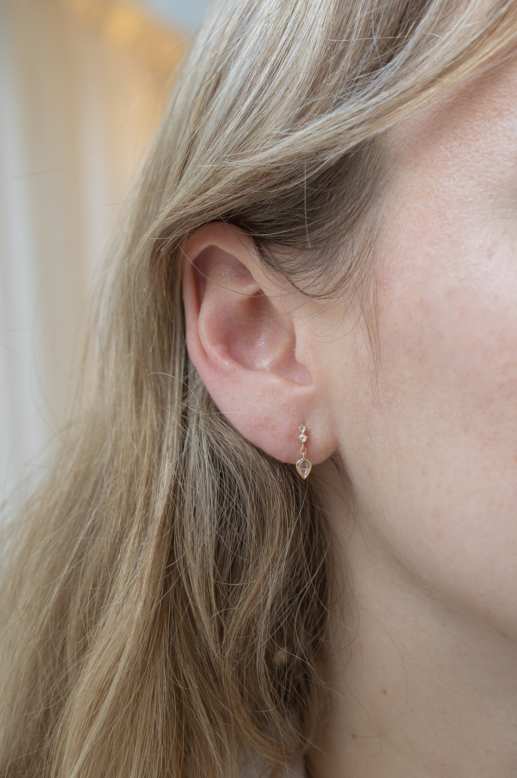 Celine Daoust 14k light yellow gold single earring with one champagne rosecut and two little diamonds. The stone comes in a gradient of light grey.