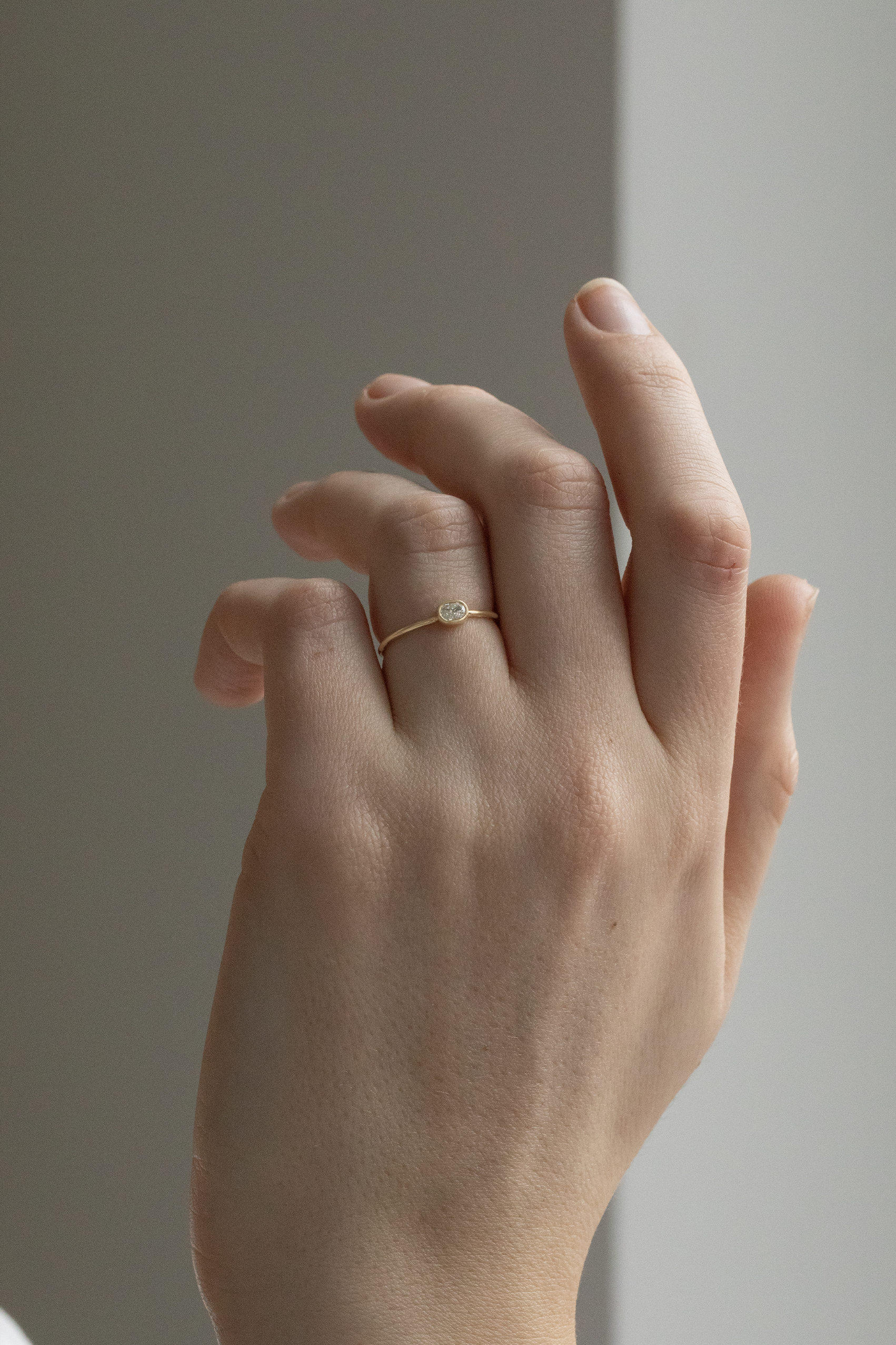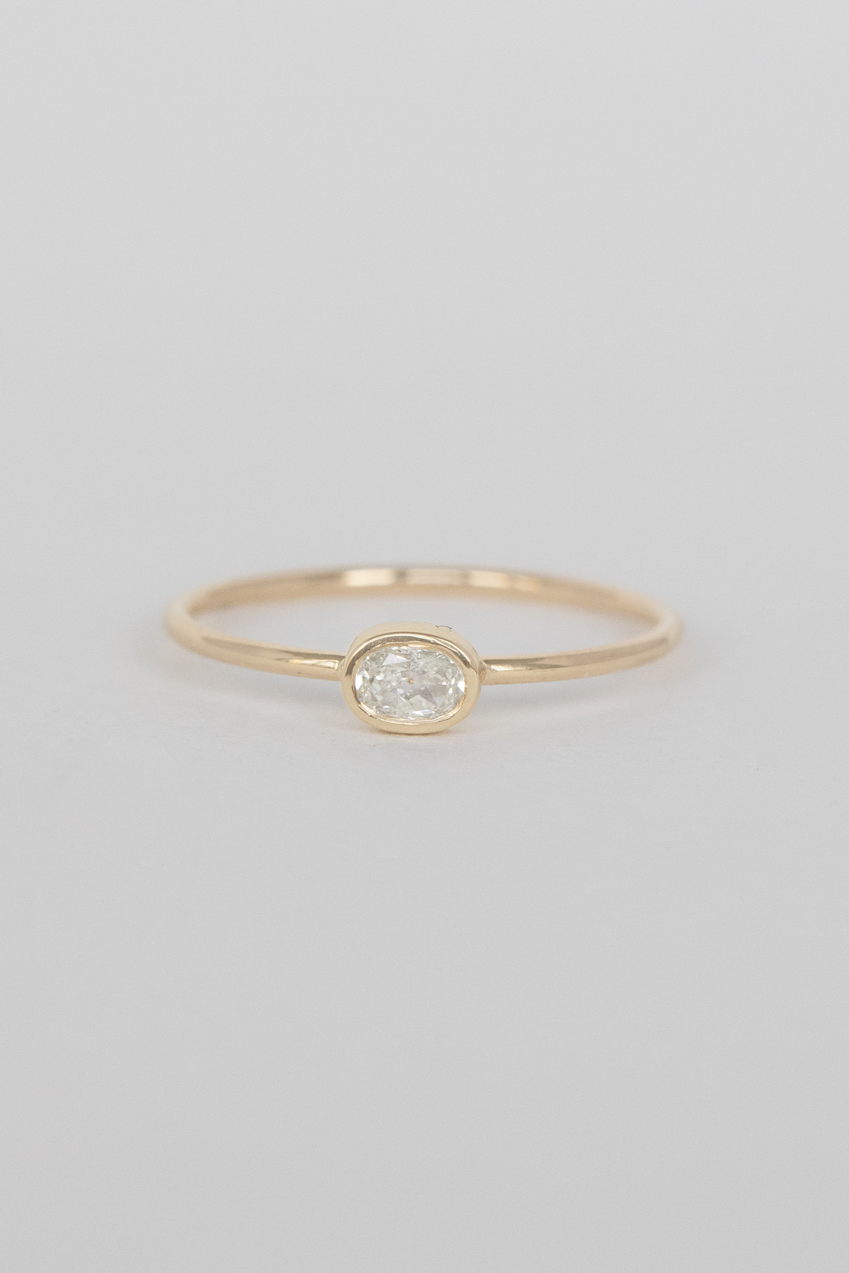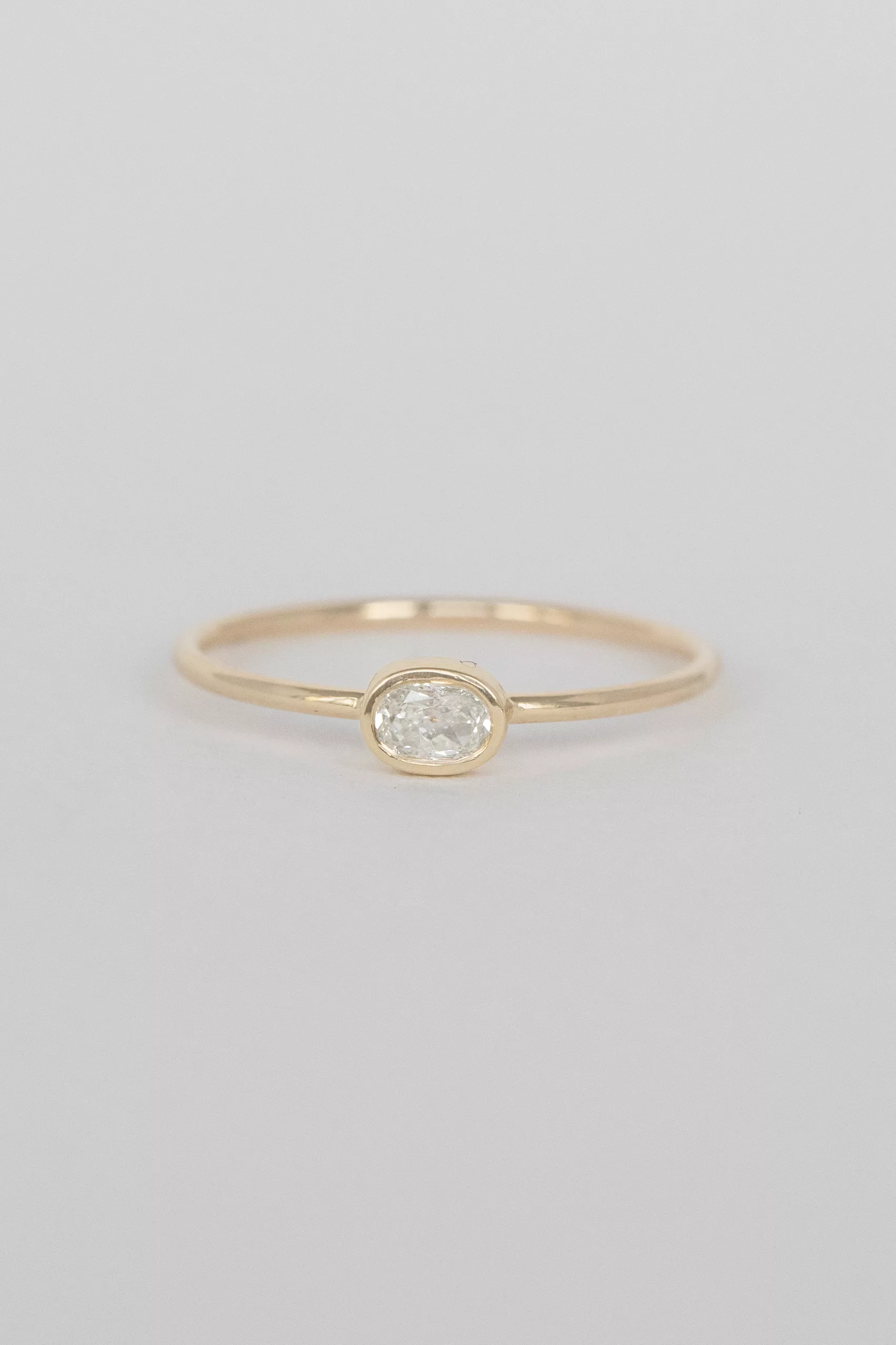 Céline Daoust 14k light yellow gold faye ring with one central diamond.
