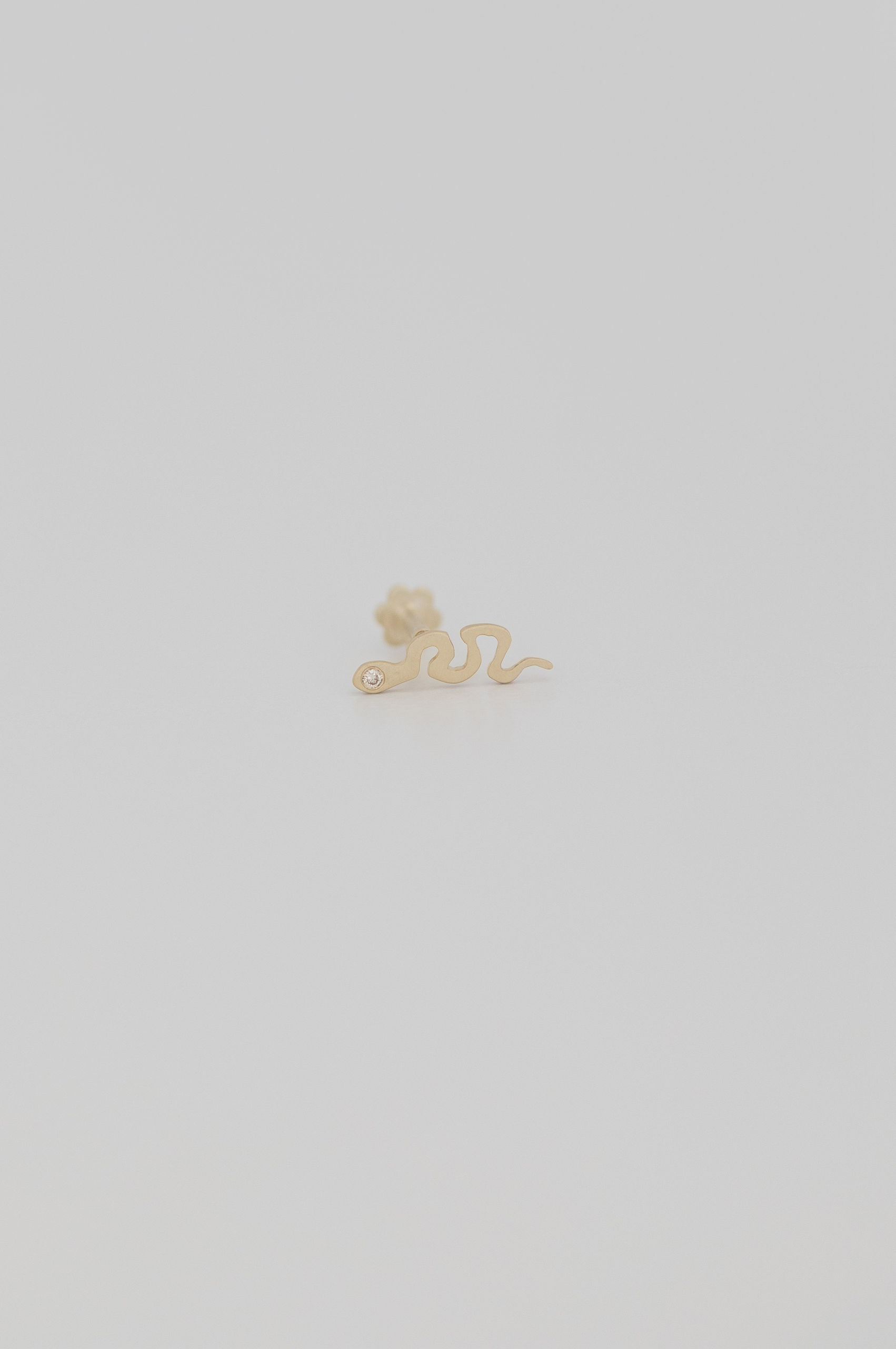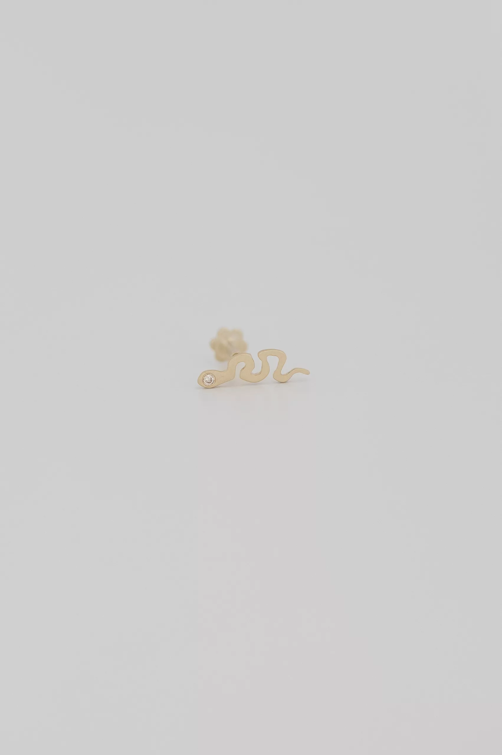 Celine Daoust 14k light yellow gold snake stud flat back piercing with one diamond.