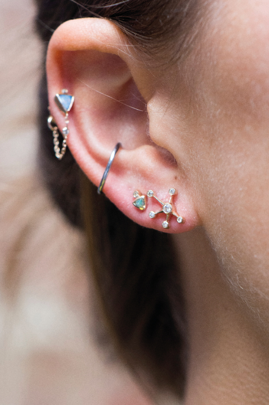 Celine Daoust 14k light yellow gold with 6 diamonds small constellation earring studs.